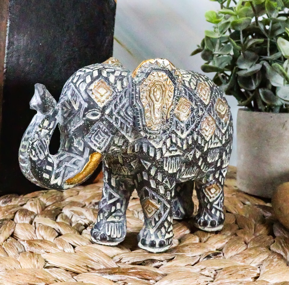 Ebros Silver Gold Patterned Elephant 5.25"L Feng Shui Elephant Calf Figurine
