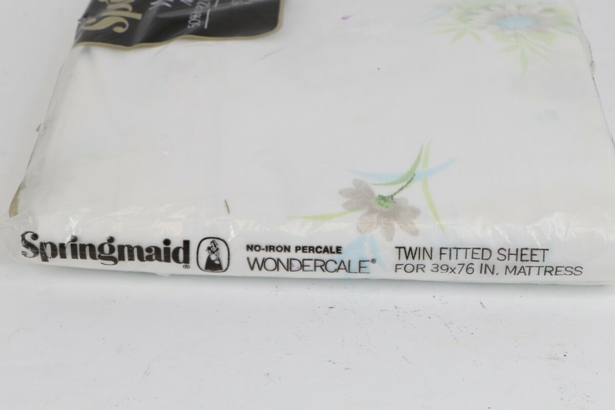 NOS Vtg 70s Springmaid No Iron Percale Wondercale Floral Twin Fitted Sheet 39x76