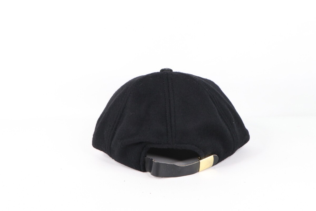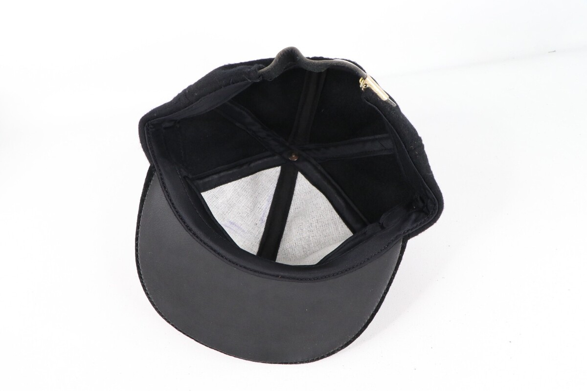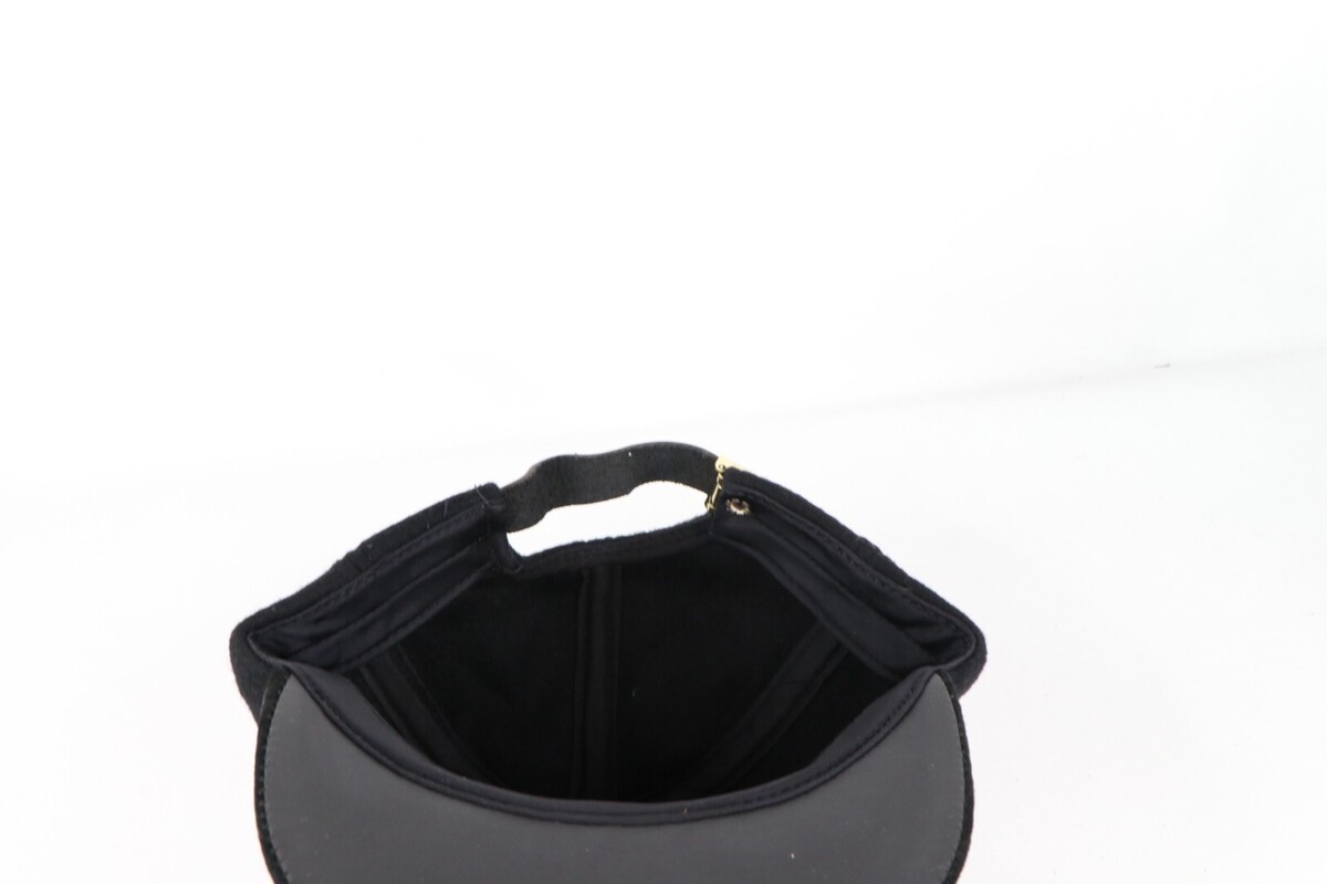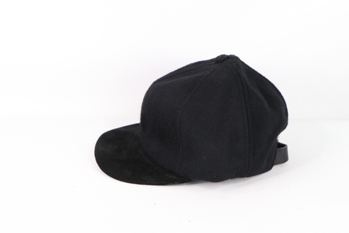 NOS Vtg 90s Streetwear Youth Blank Suede Wool Short Brim Strapback Hat Cap Black