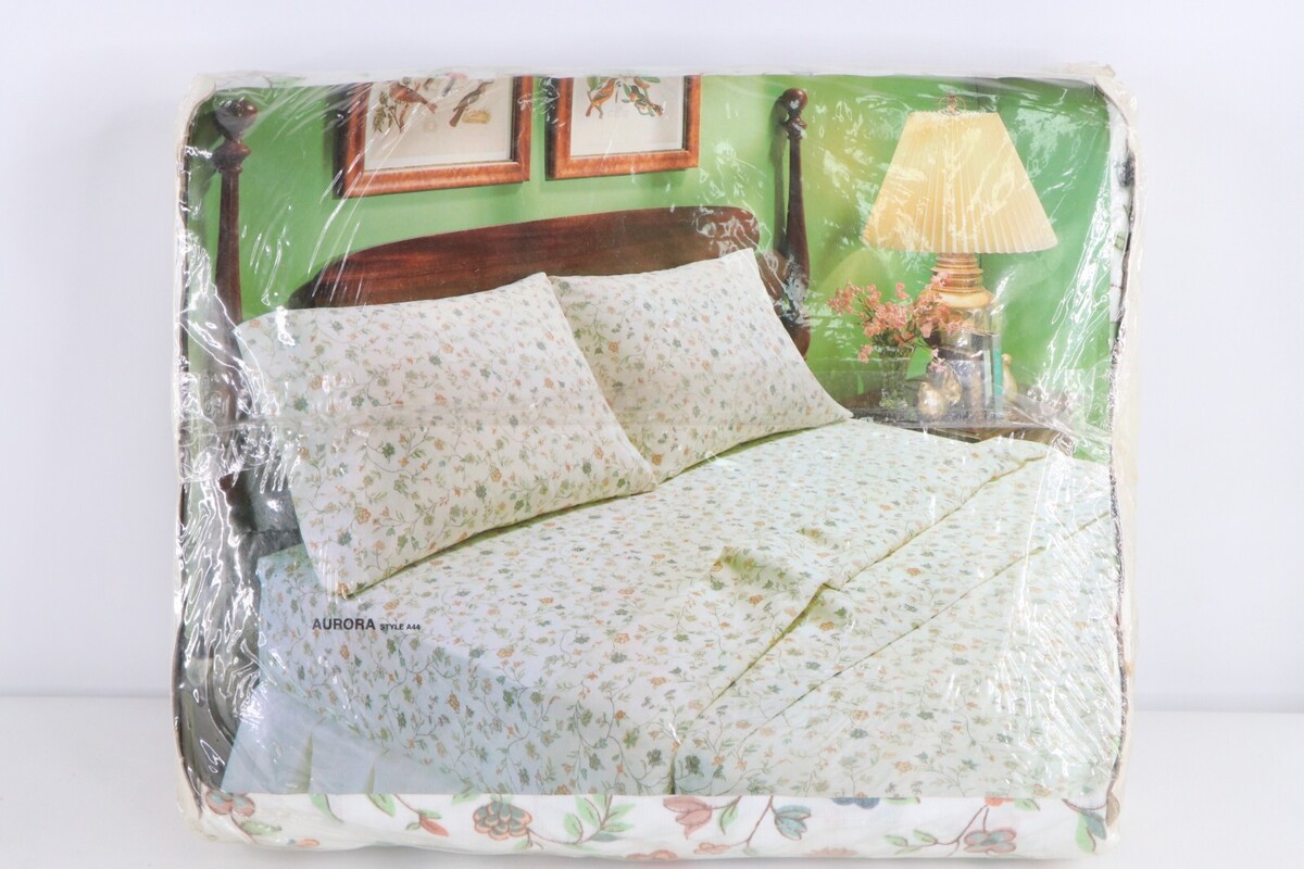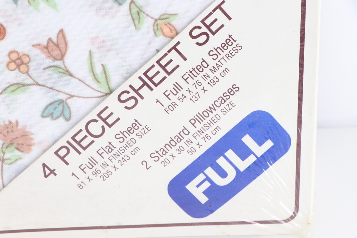 NOS Vtg 70s Mid Century Modern MCM Flower 4 Piece Sheet Set Full 2 Pillowcases