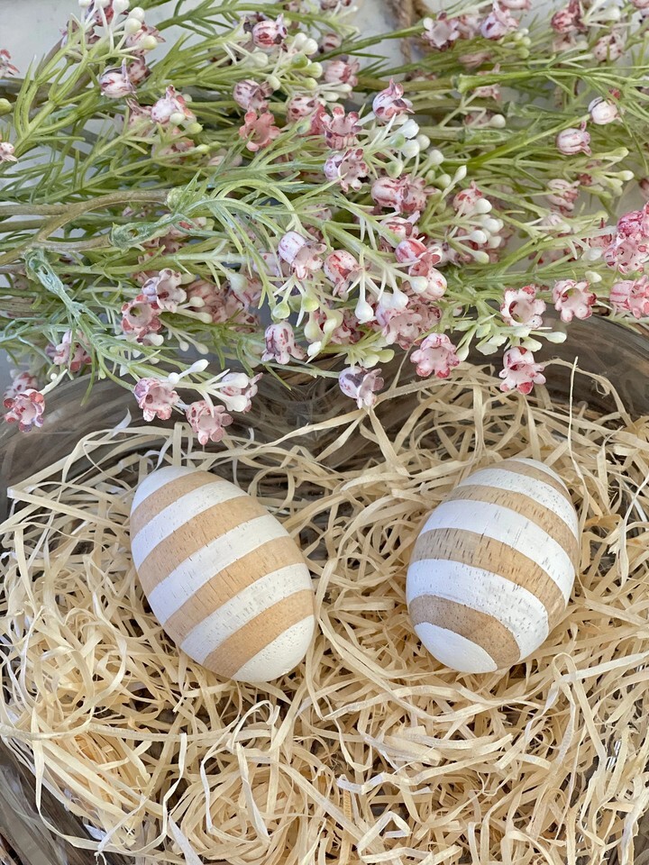 Hanging Wooden Egg - Hand Painted White Stripes Design