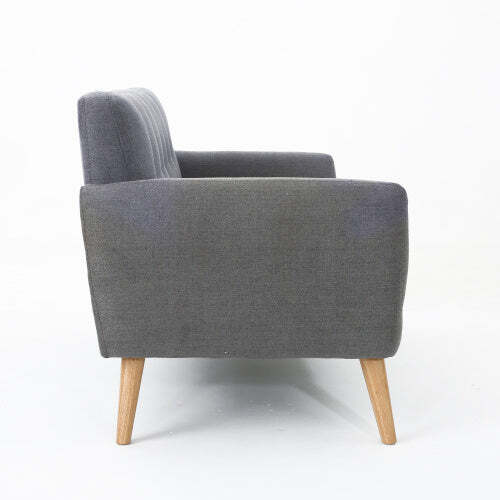 Treat your interior to a charming loveseat sofa that's perfect for smaller living spaces. With a button-down backrest with waffle stitching and slender tapered wooden legs, this delicate two-seater sofa is the perfect addition to any living room, bedroom or hallway. It has a gorgeous classic look and brings an impressively modern touch that easily fixes your decor in an elegant atmosphere.
