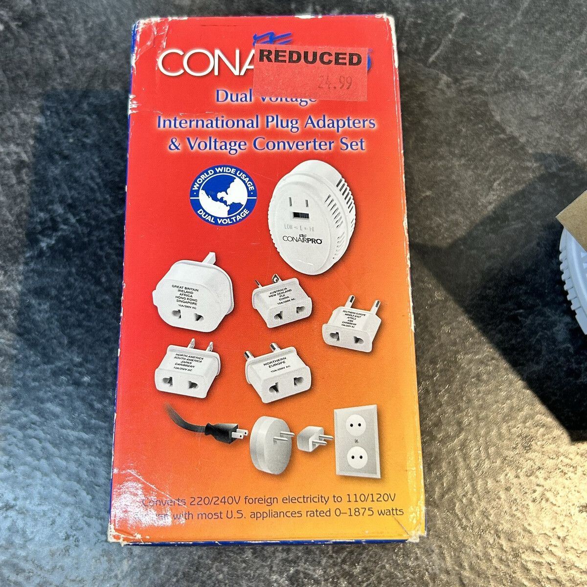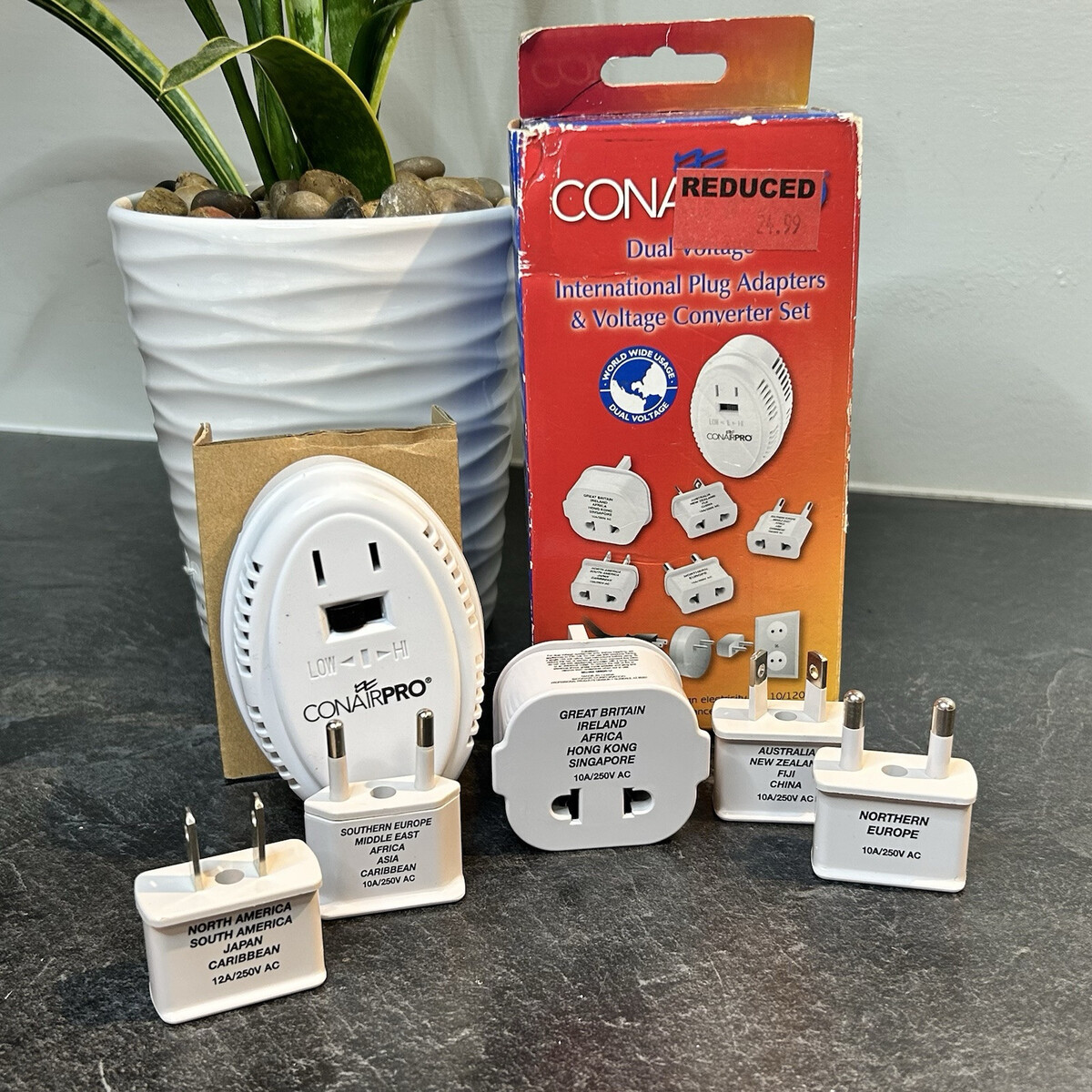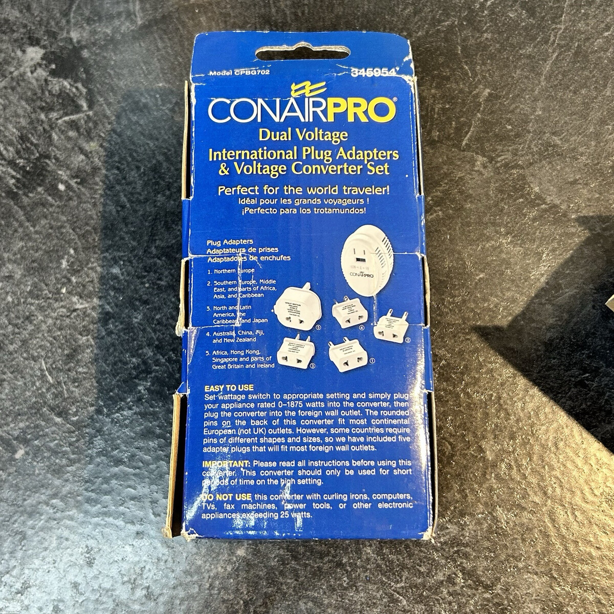New in box. 2014 ConairPro Dual Biltage International Plug Adapters Voltage Converter Set
