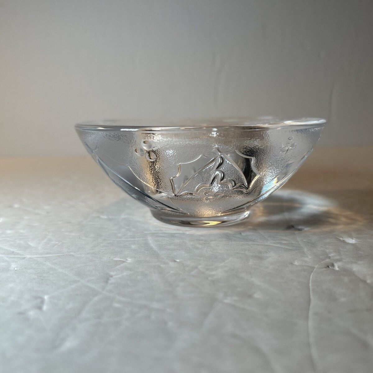 Orrefors Sweden Crystal Holly Days Christmas Votive Candle Holder Holiday