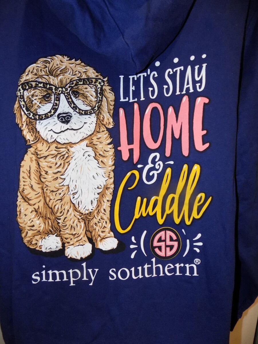 Simply Southern Blue Puppy "Let's Stay Home & Cuddle" Hoodie Sweatshirt Size XL