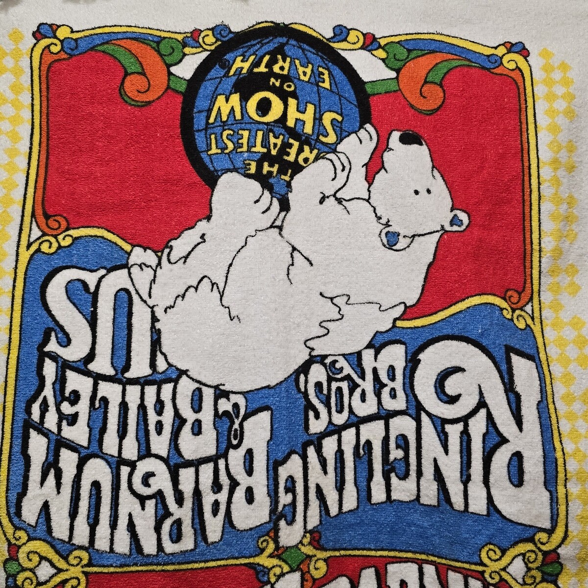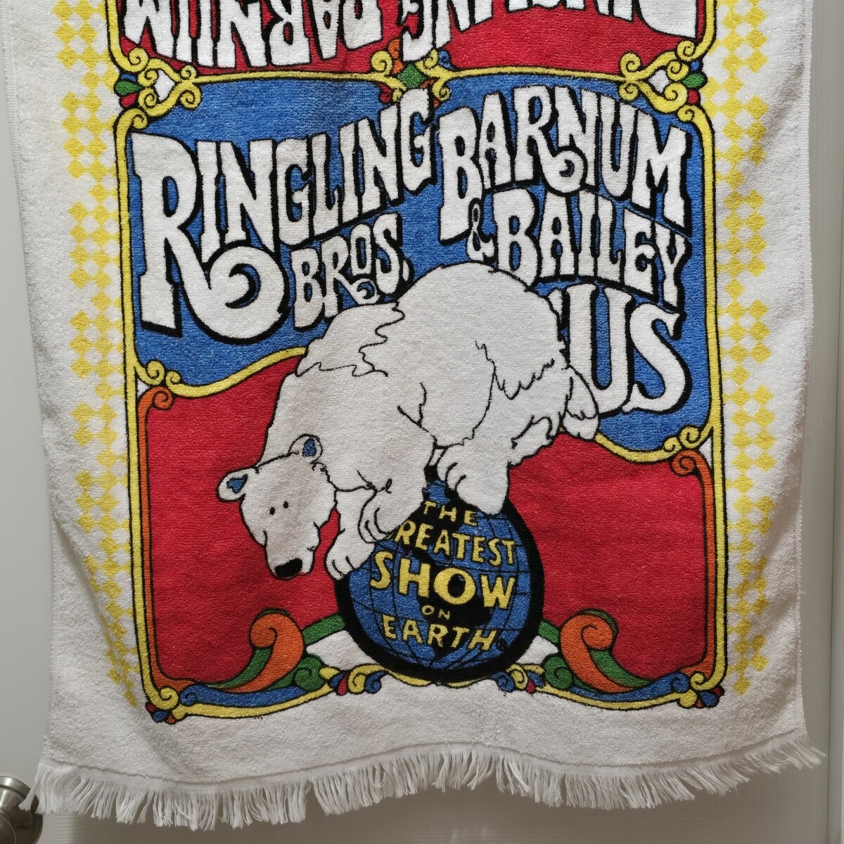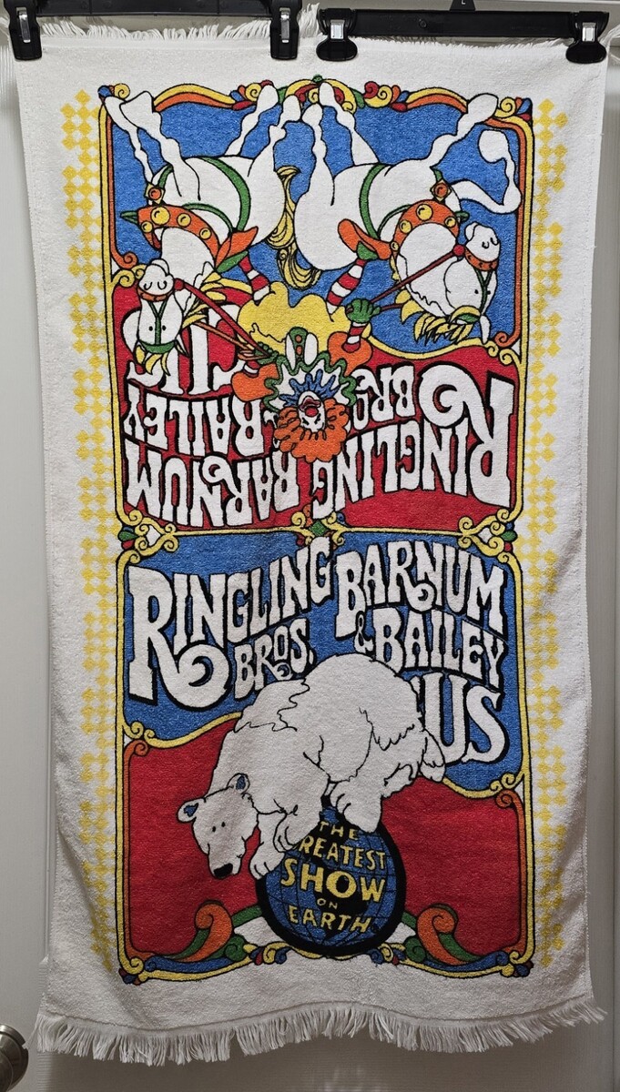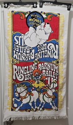 New Without Tags / Never Washed Vintage Fieldcrest Barnum And Bailey Ringling Bros - The Greatest Show on Earth - Circus Collectible Beach Towel. Approximate Size: 40" x 24" - There is an additional 1.5" fringe on each side if you want to add that to the length. Made in USA!