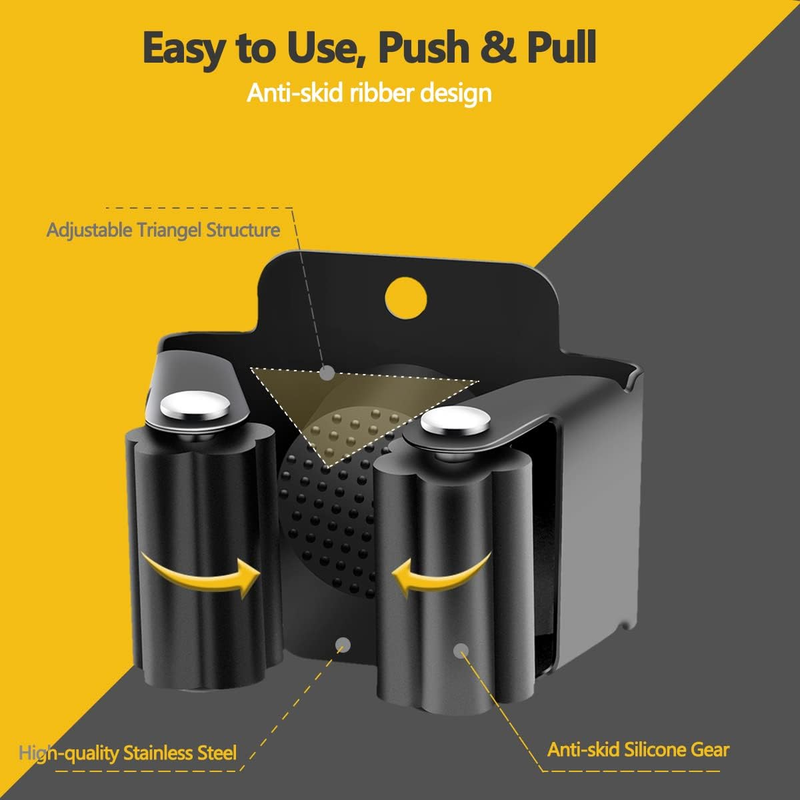 Mop and Broom holder made of high-quality spring steel with superb clamping force.