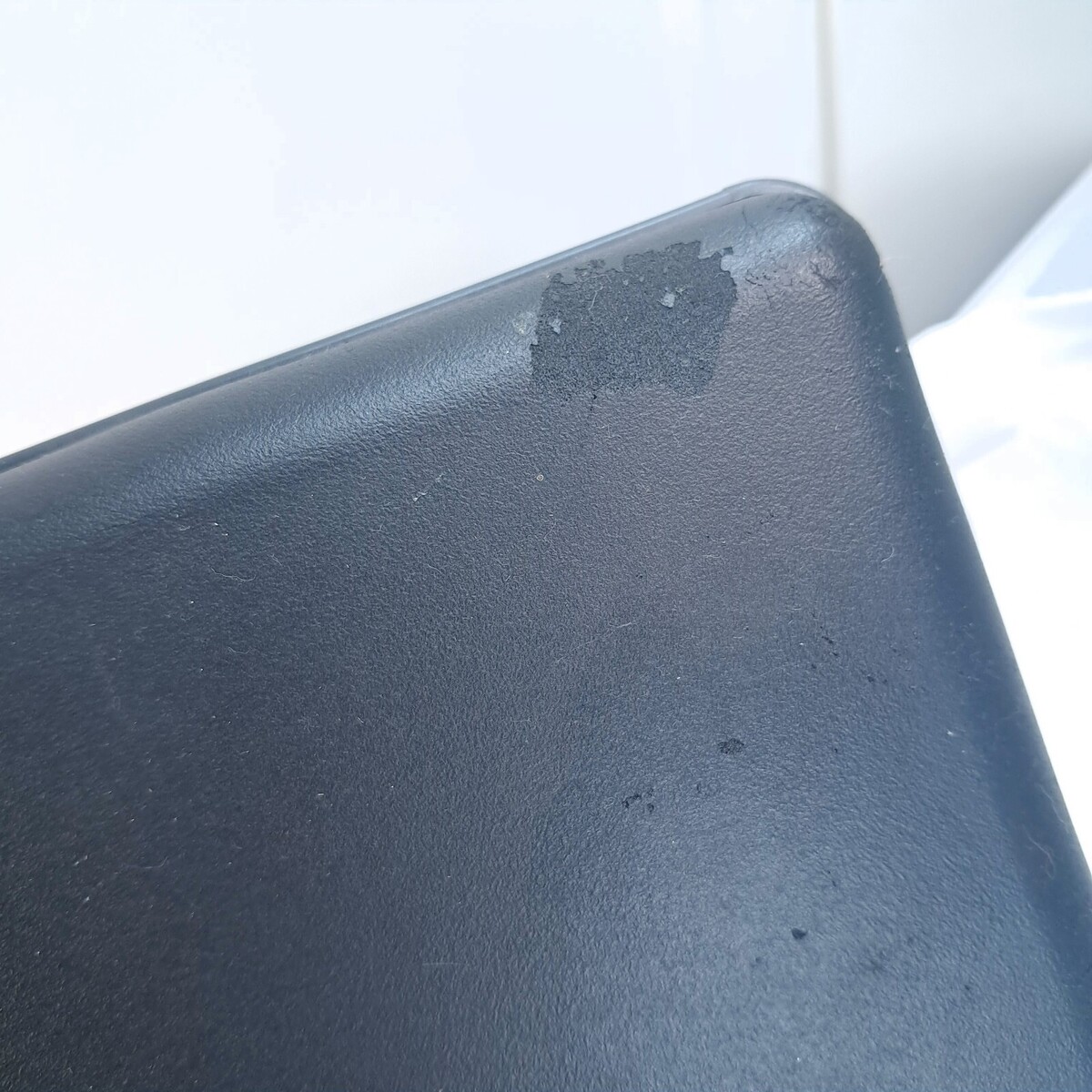 Foam outside. Accordion style inside. Holds 24 discs. Some cosmetic issues to the foam including cracks/missing chunks/general wear etc. See pics.