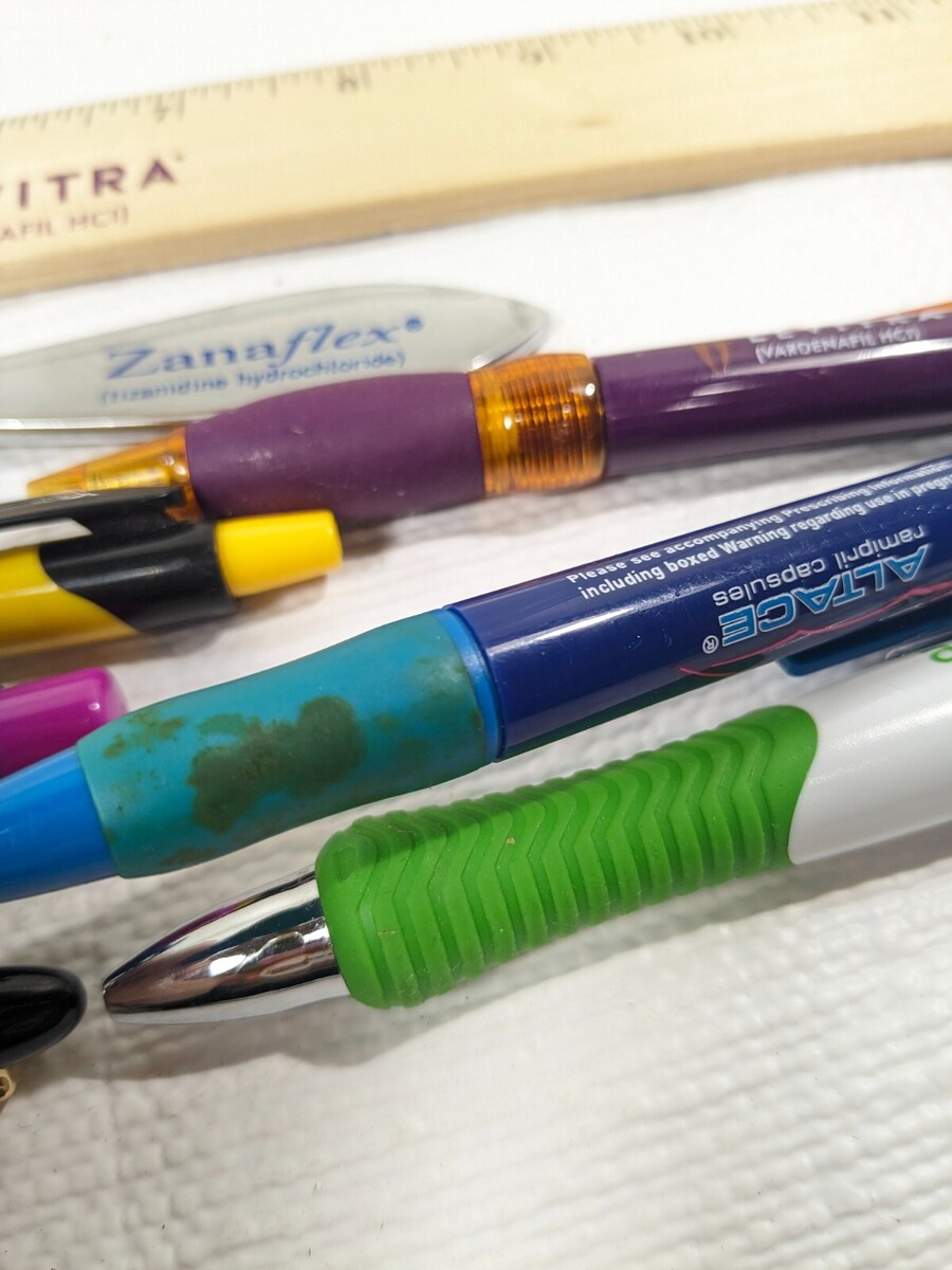 Some items have marks/stains/wear/discoloration from use. Some pens may not work/write. Includes: