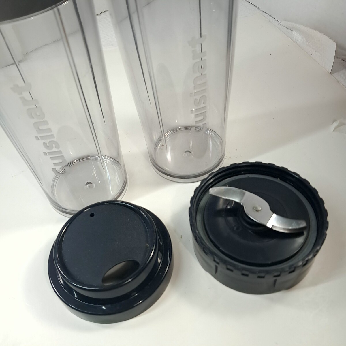 Includes 2 cups, 3 lids, and blade assembly. Minor scuffs and scratches from use but overall very good condition.