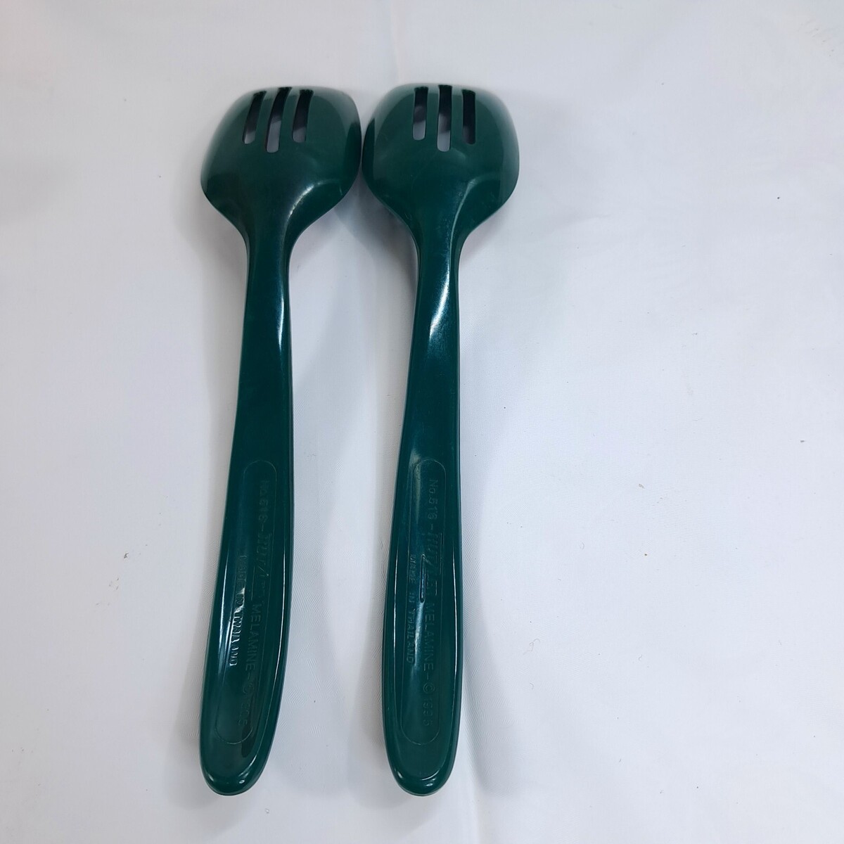 Hutzler Melamine Mini Slotted Spoons #516 Green set 2 1995 serving Vintage