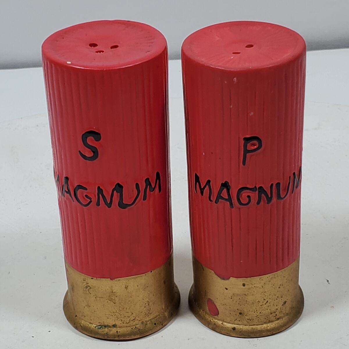 Magnum Shotgun Shell Shaped Ceramic Salt & Pepper Shakers 4 Inch Tall + Stoppers