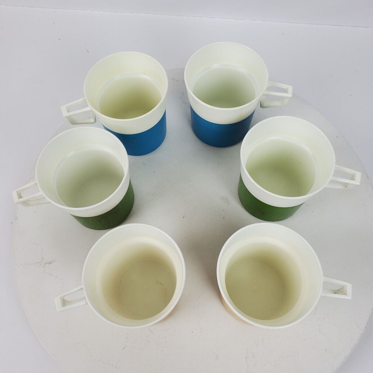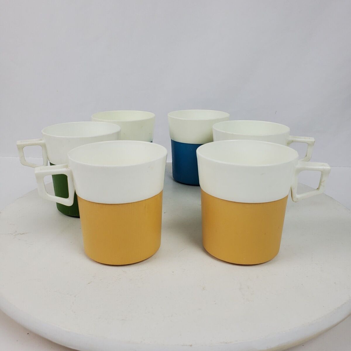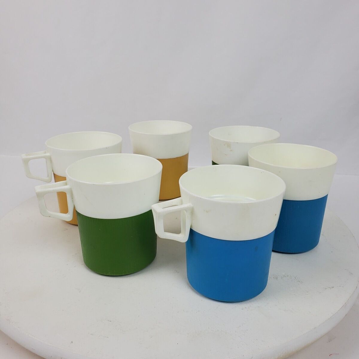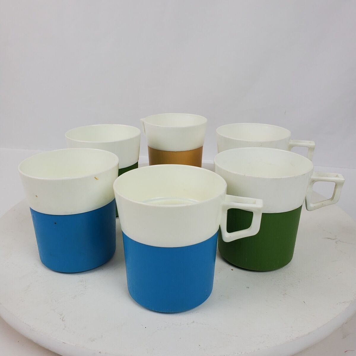 Vintage Mid Century Coffee Cups Plastic Green Yellow Blue SET OF 6