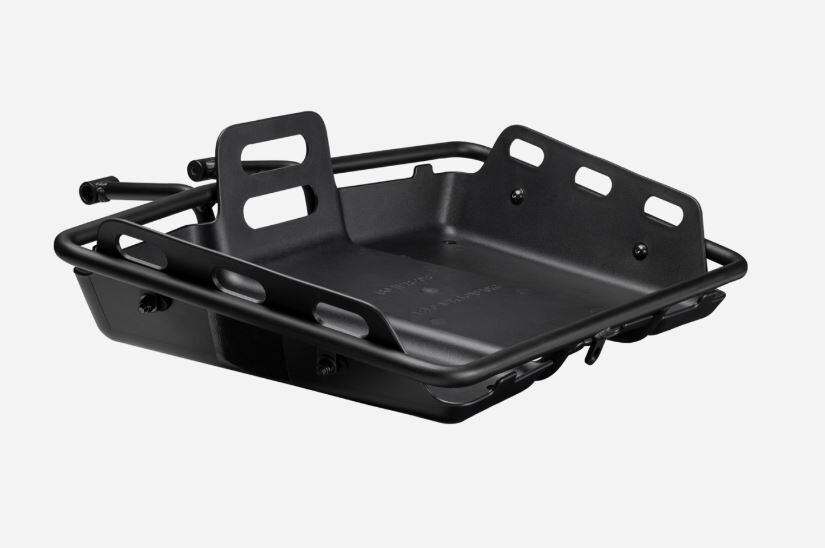A sturdy and light front rack that mounts directly to the head tube of compatible models (4-bolt).