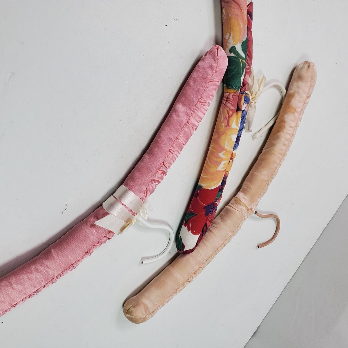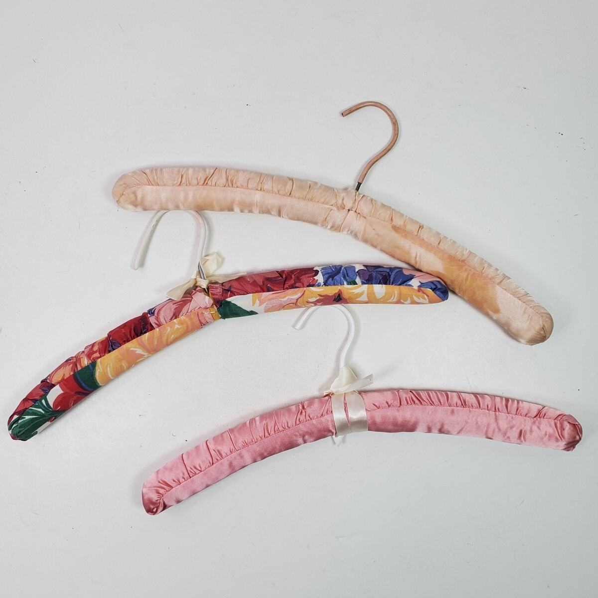 Vintage Wire Wood PADDED Clothes Hangers SET and similar items