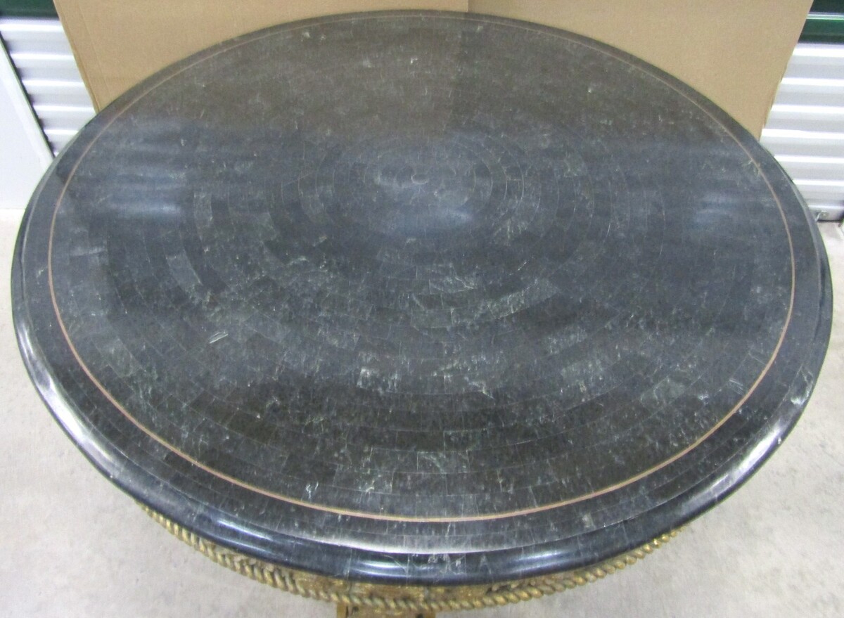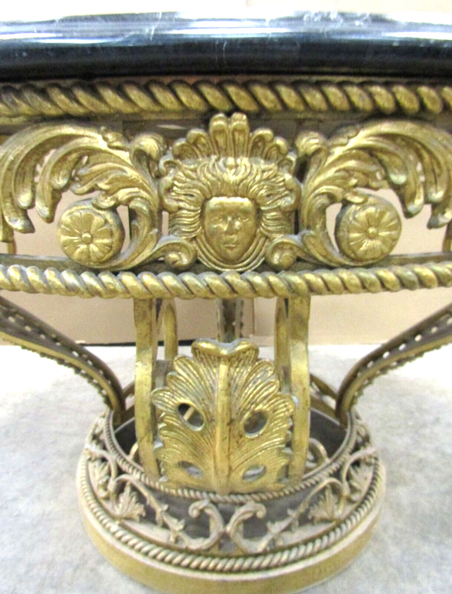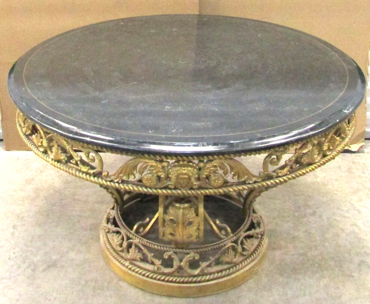 Henredon French Louis XV Style Ornate Cast Iron Gold Centre Table Faux Marble