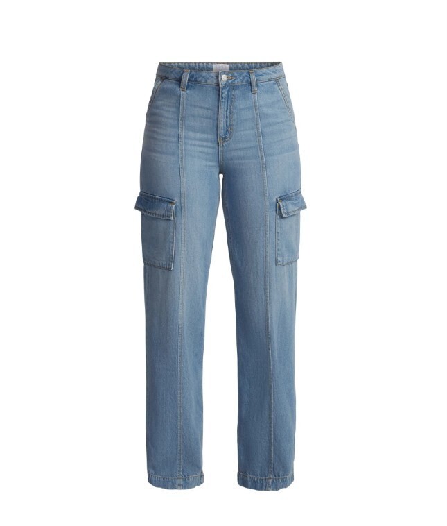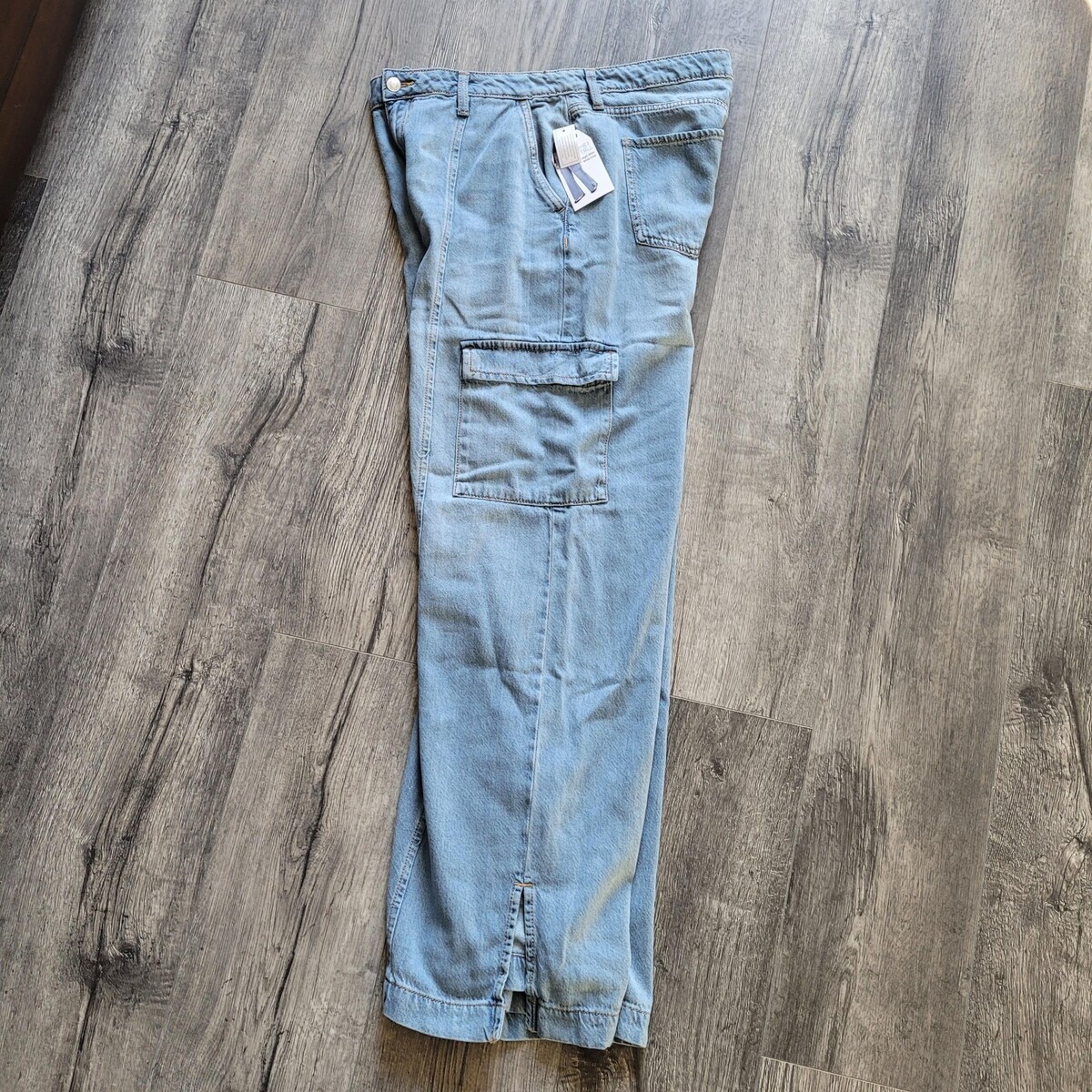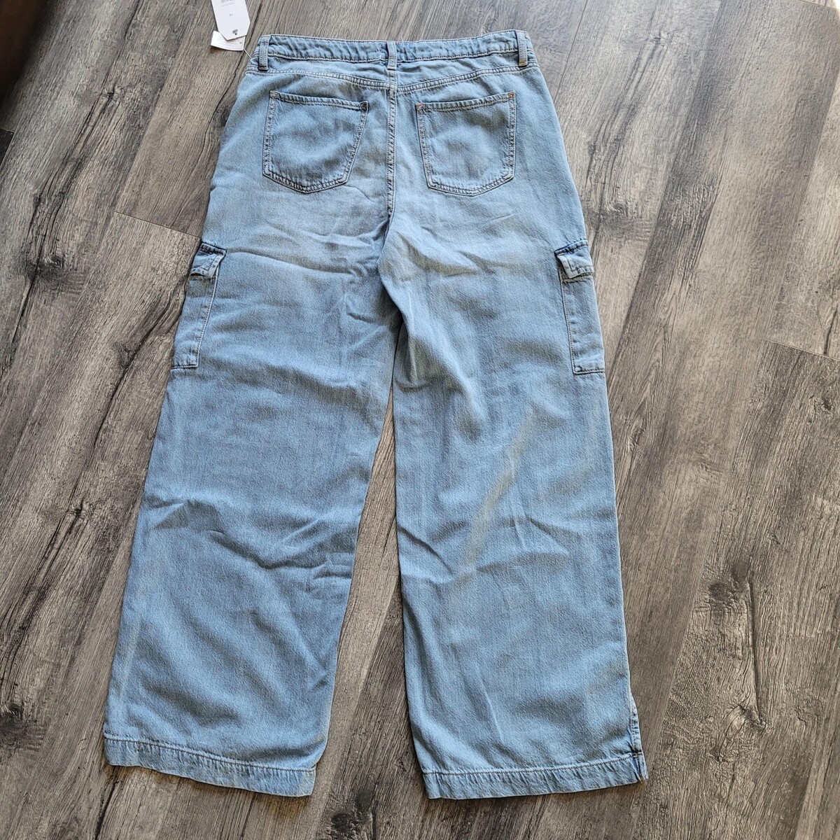 New NWT Women's Time & Tru Cotton Blend Wide Leg Cargo Blue Jeans Pants Size 12