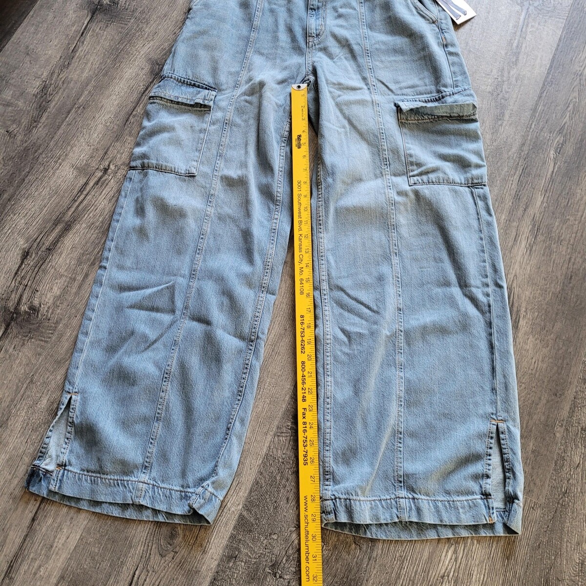 New NWT Women's Time Tru Cotton Blend Wide Leg Cargo Blue Jeans Pants Size 12