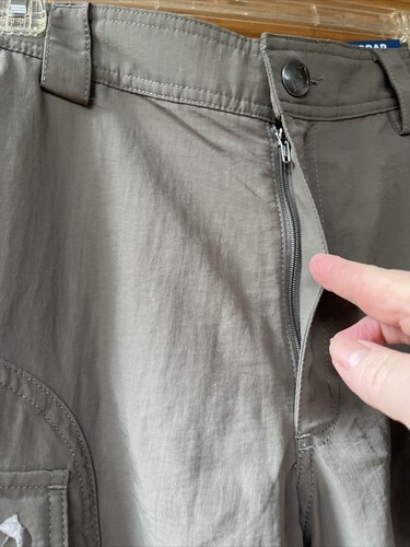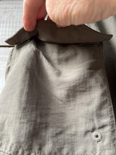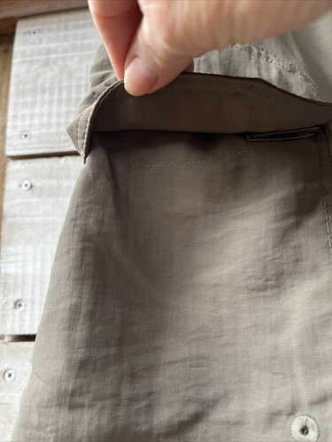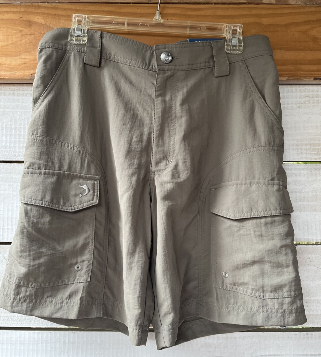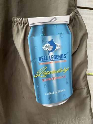 NWT Reel Legends Sage Sea Green Sandbar Shorts Size 32 Fishing Quick Dry UPF 50 Sun Protection Moisture wicking + Refreshment Beverage Can/Water bottle pocket ~ 6 pockets total, 2 lower front have tab cling closures, shown. Lightweight comfortable 100% Nylon material ~ top waist to base hem is 19". waist is 32", inseam is approx. 8".