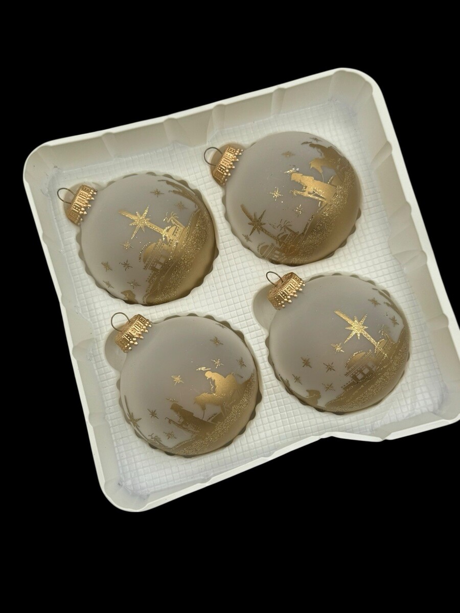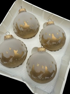 Christmas by Krebs Ornaments Set of 4 Frosted Glass Gold Glitter Nativity Camels