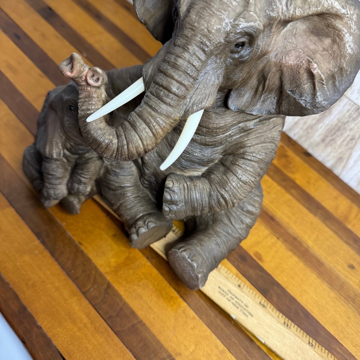Mommy and Baby Elephant 9" Sitting Statue Figurine Resin Home Decor Sculpture