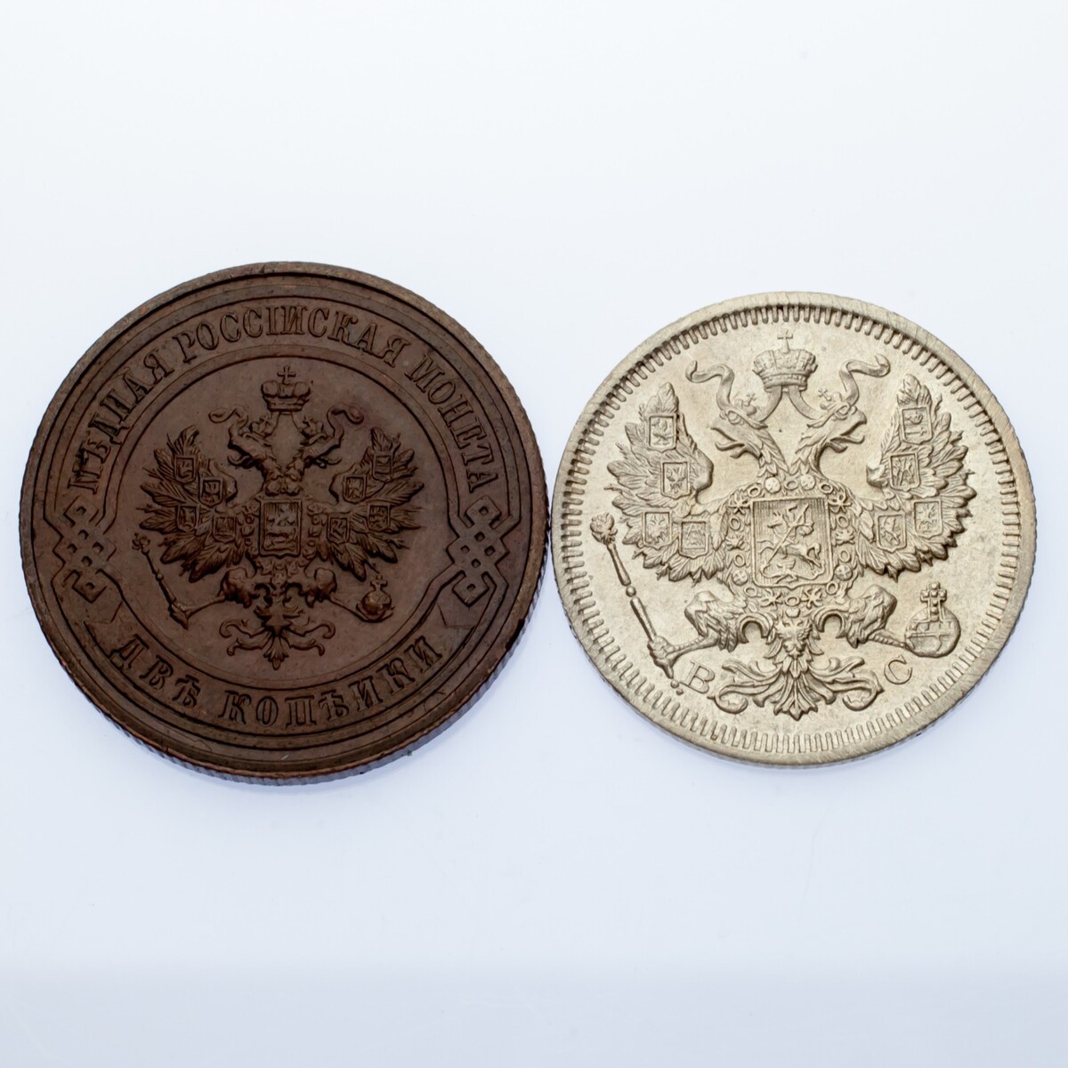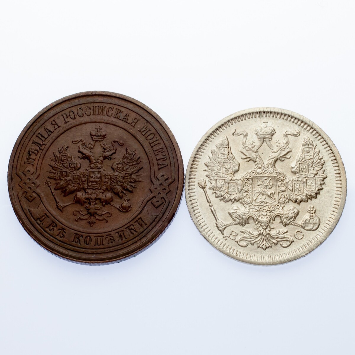 1916 Russie 2 Kopek (Au) & 20 Kopek (VF) and similar items