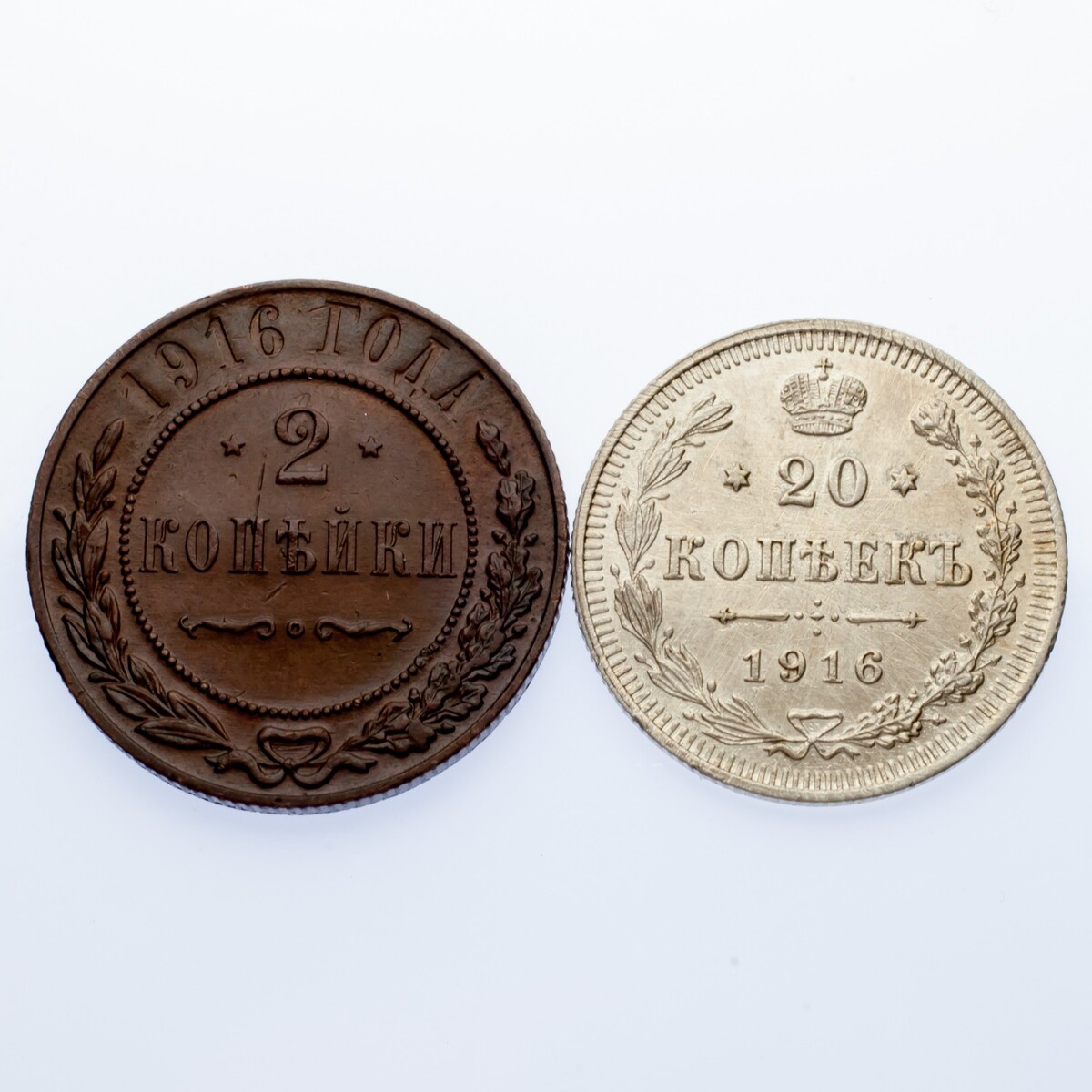 1916 Russie 2 Kopecks (2K) et 20 Kopeks (20K)