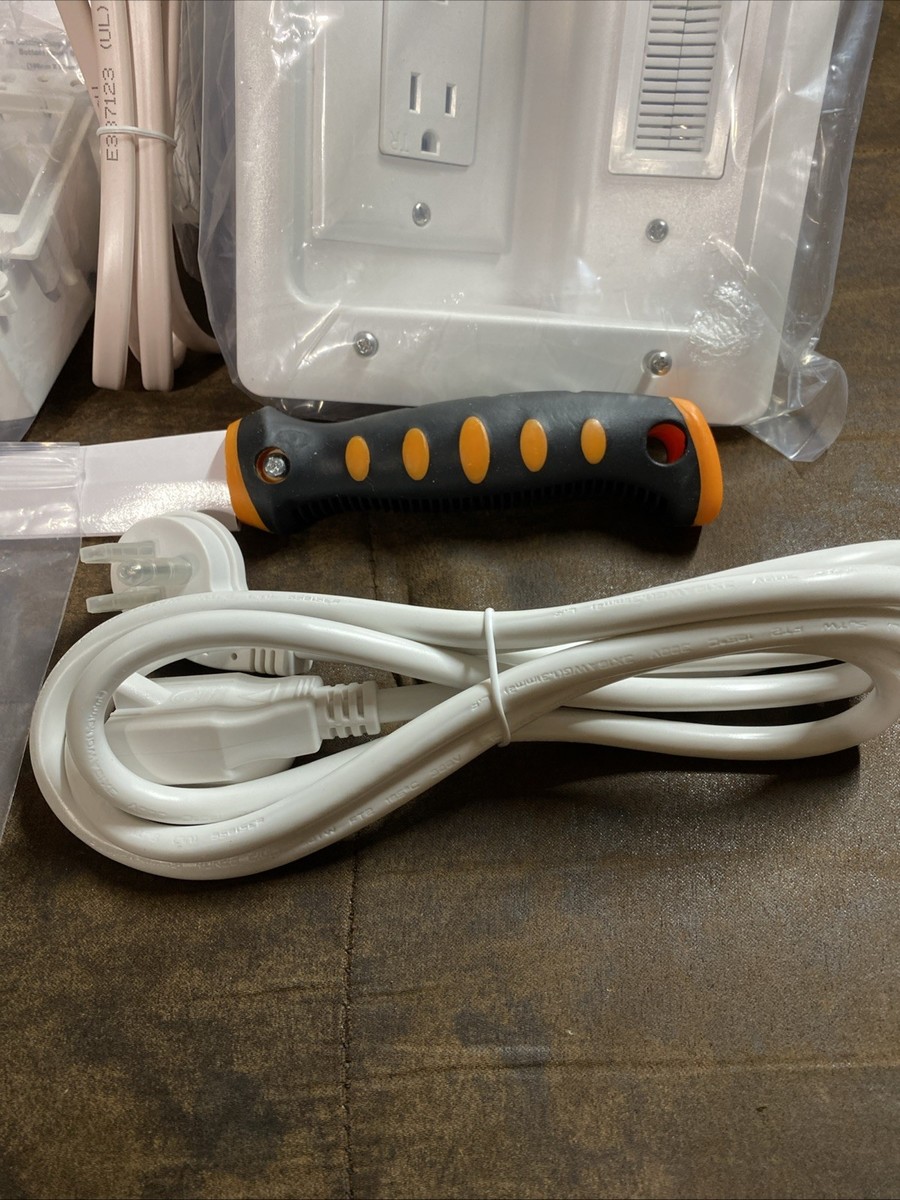 The PRLF Pro In-Wall Power Cable Routing Kit is a new product designed for routing power and cables within walls. The kit includes the necessary components to easily install and organize electrical wiring and cables for a clean and organized setup. The white color of the cable makes it blend in with the surrounding walls, providing a discreet and professional appearance. Perfect for computer networking setups or for organizing power cables in a home or office environment.