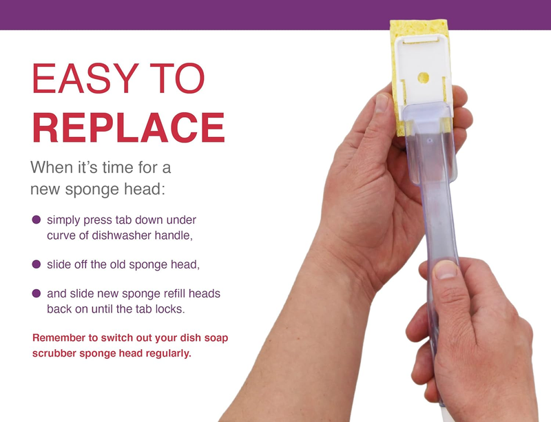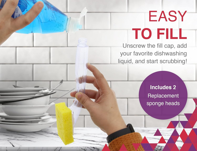 Easy to Fill - Unscrew the fill cap, add your favorite dishwashing liquid, and start scrubbing! Remember to switch out your dish soap scrubber sponge head regularly. Additional replacement sponges sold separately.