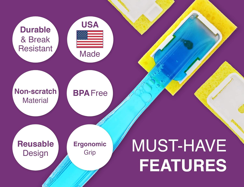 Must-Have Features - Each food-safe, BPA free plastic dish soap sponge wand is MADE IN THE USA, reusable, durable and break resistant. It dispenses detergent as you wash, ideal for everyday cleaning tasks in your kitchen, bathroom and more.