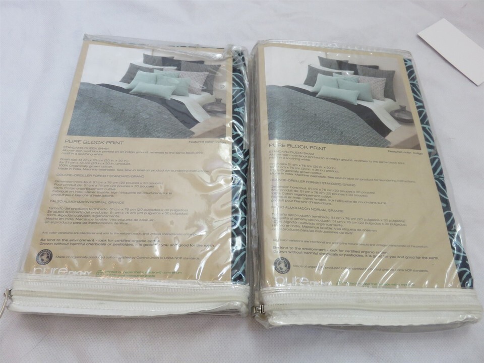 - shams feature a leaf motif block printed on an indigo ground reversing to the same block print motif in a soothing white, fully reversible