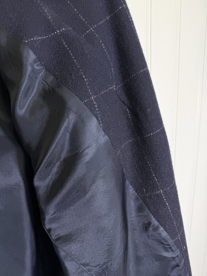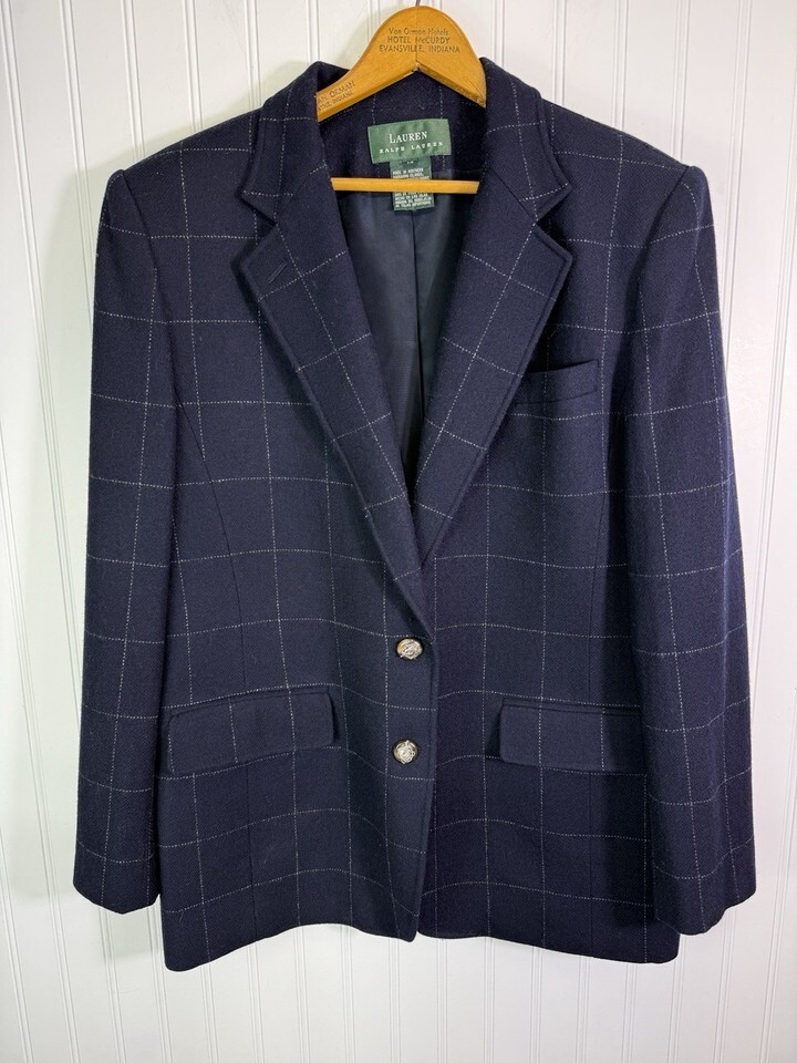 Lauren Ralph Vintage Blazer Equestrian Blazer Navy Blue Windowpane Wool Women 14