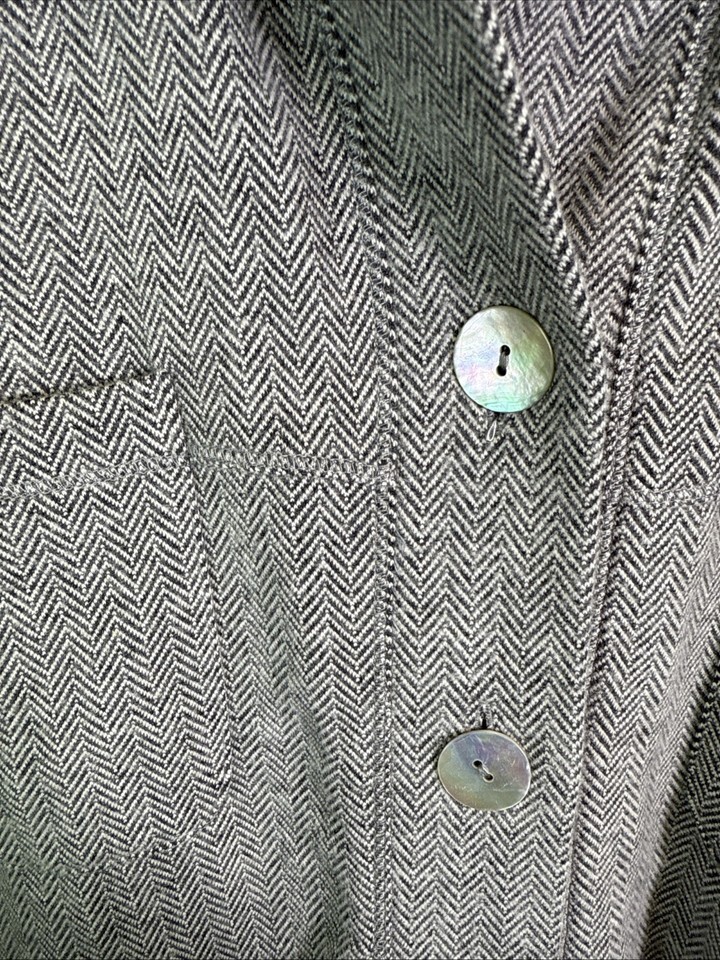 Soft Surroundings Shacket Women's Medium Gray Herringbone Flannel Shacket Cardigan. Coastal Grandma vibes with mother of pearl buttons.