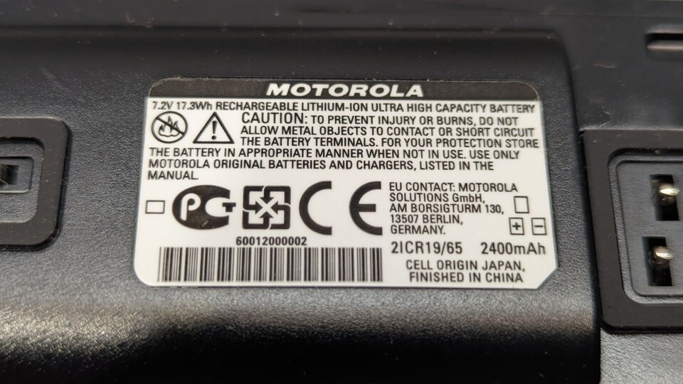 Motorola RLN6308 Ultra Capacity Battery 7.2V 17.3Wh 2400mAh RDX Radios New