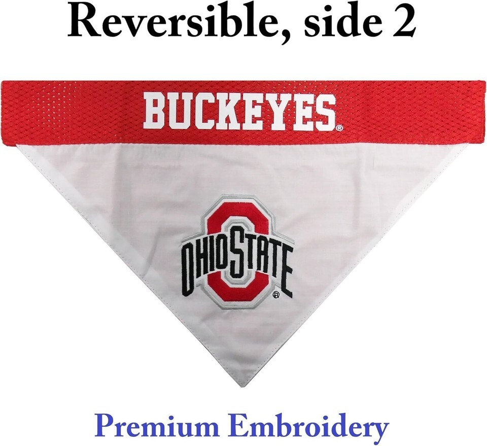 Pets First Collegiate Ohio State Buckeyes Reversible Bandana - Home Away Mesh Premium Embroidery for DOGS CATS