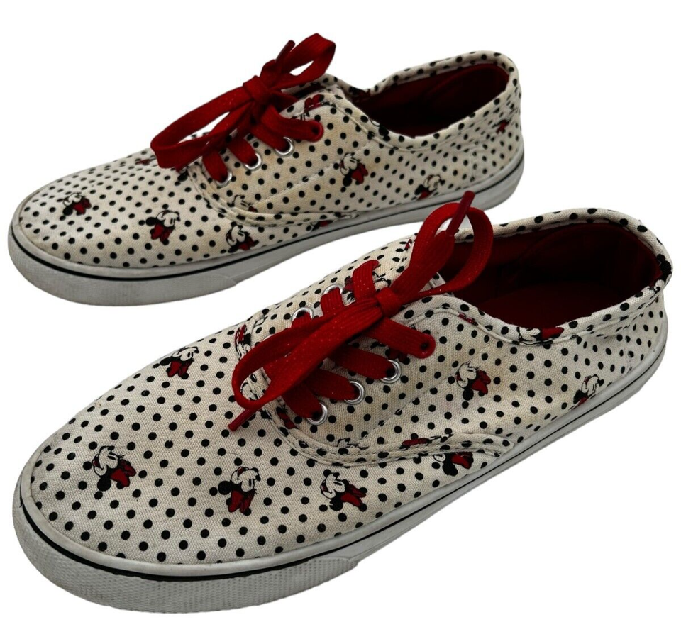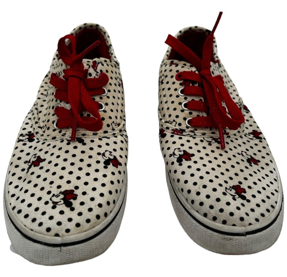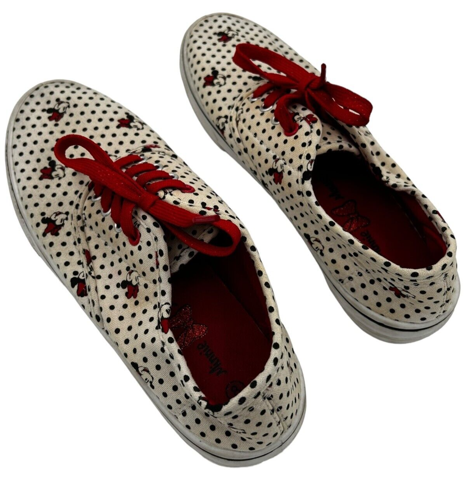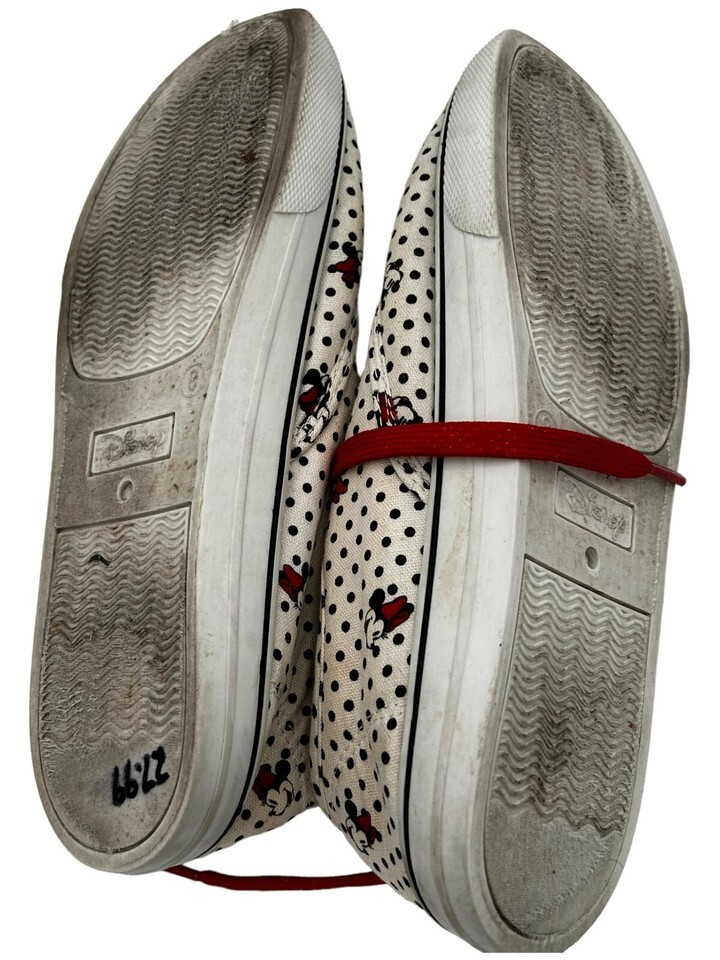 Disney Minnie Mouse White Black Polka Dot Print Red/Gold Sparkly Lace size 8