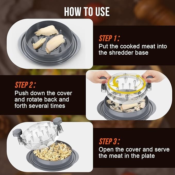 Make meal prep faster and easier! The SoulLife Chicken Shredder lets you shred cooked chicken, pork, beef, or turkey in seconds. Just place your meat inside, close the lid, and twist?no more pulling with forks or mess.