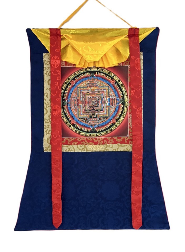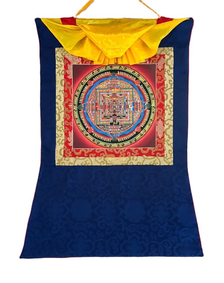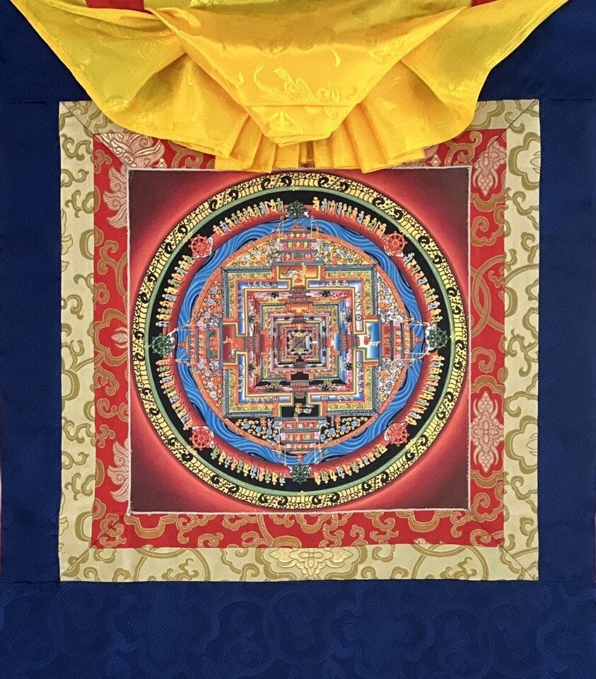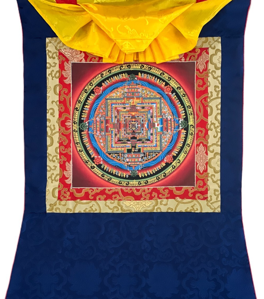 KALACHAKRA MANDALA ORIGINAL TIBETAN THANGKA/THANKA PAINTING WITH SILK BROCADE