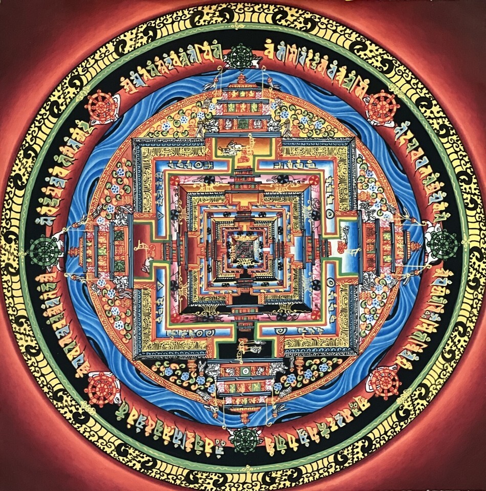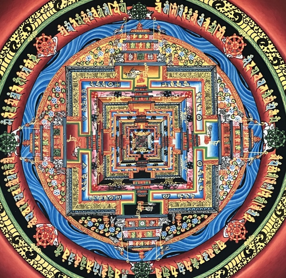 HAND-PAINTED KALACHAKRA MANDALA -THE WHEEL OF LIFE/TIME ORIGINAL- UNIQUE
