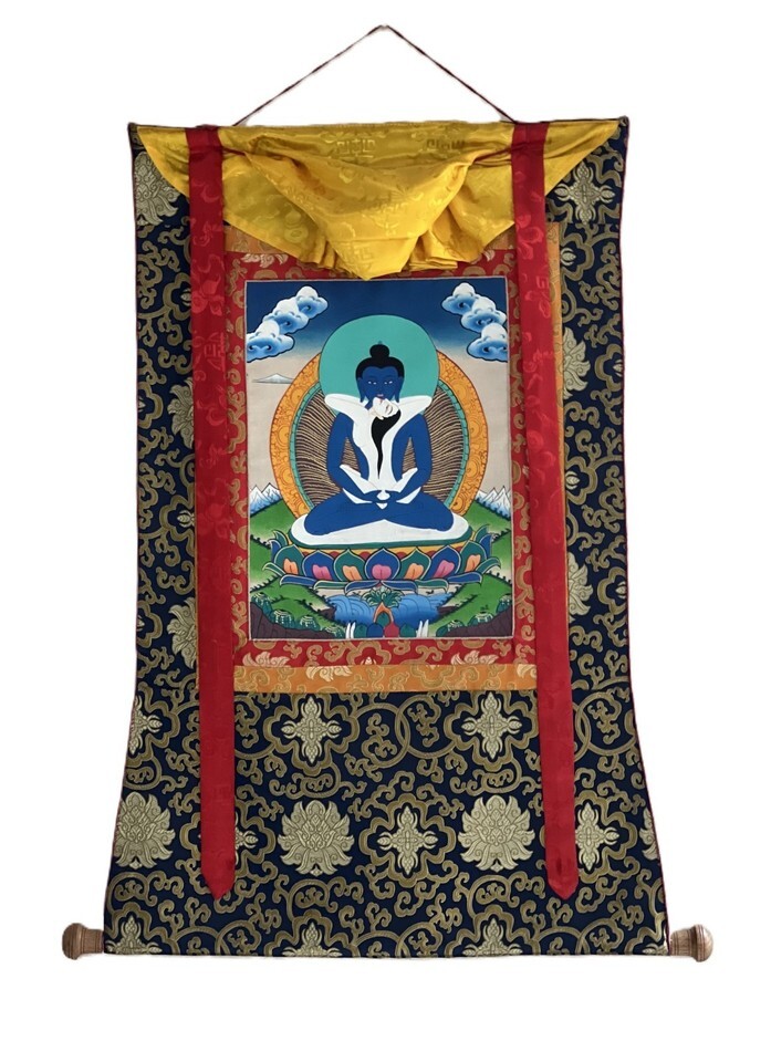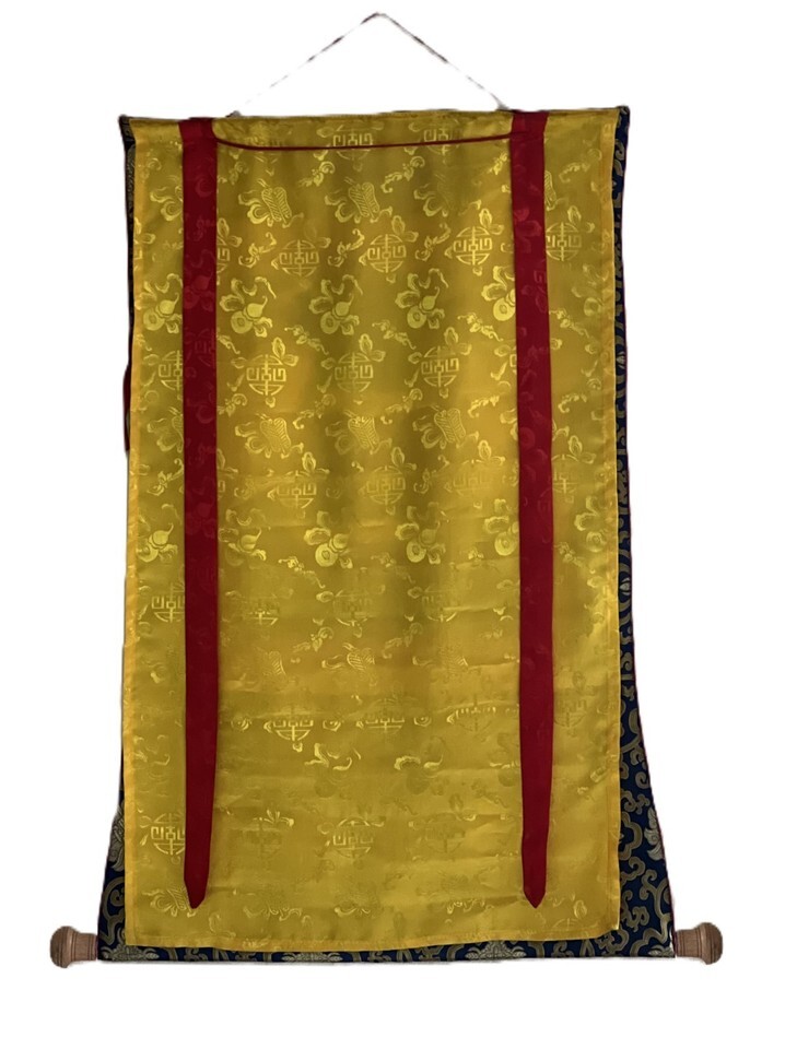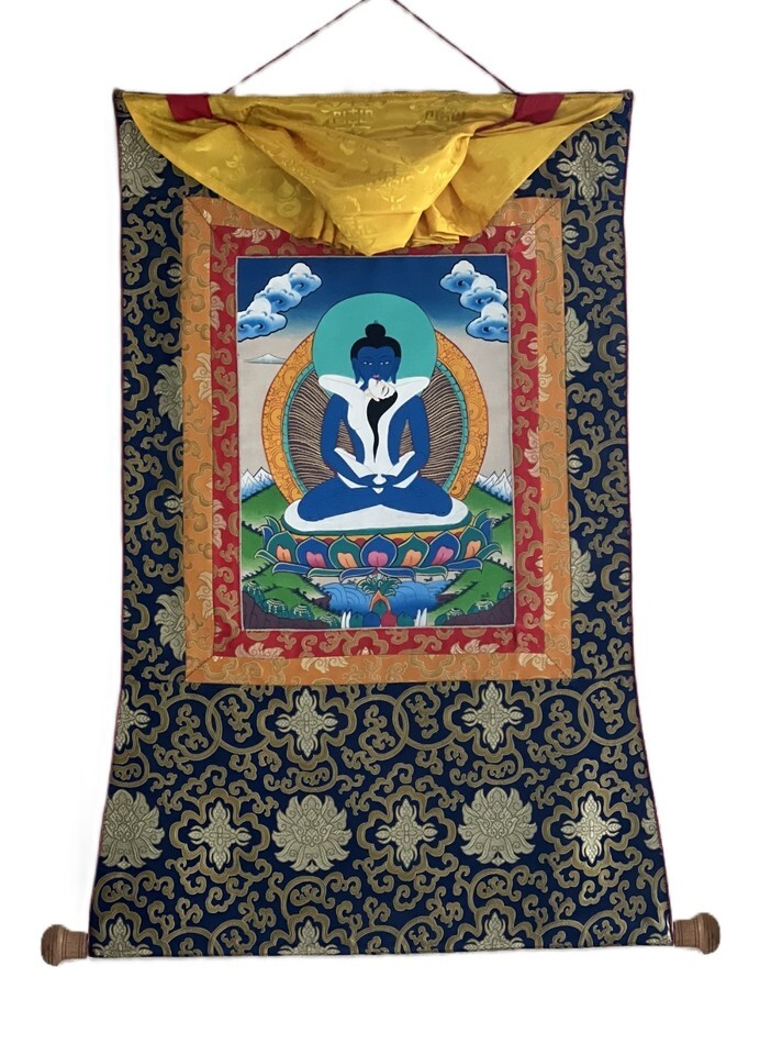 This thangka is more than a painting; it is a portal to the spiritual realm, inviting you to explore the profound depths of Buddhist philosophy and meditation. Embrace the authenticity and vibrancy of this original masterpiece, complemented by a luxurious silk brocade that enhances its timeless allure.