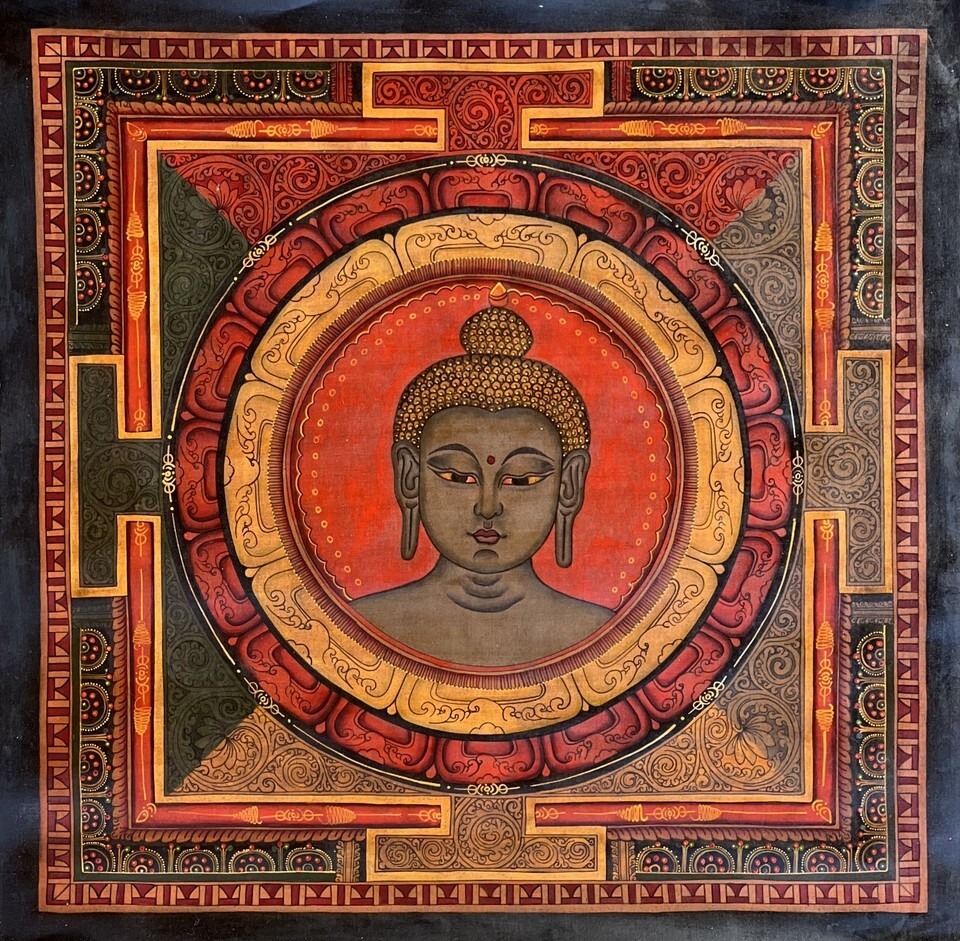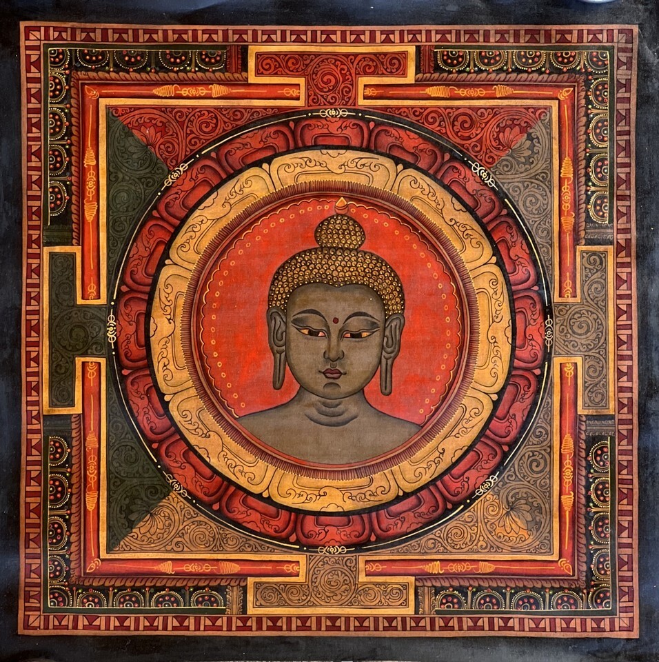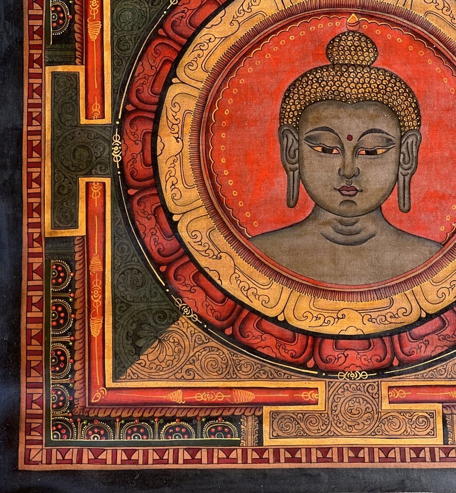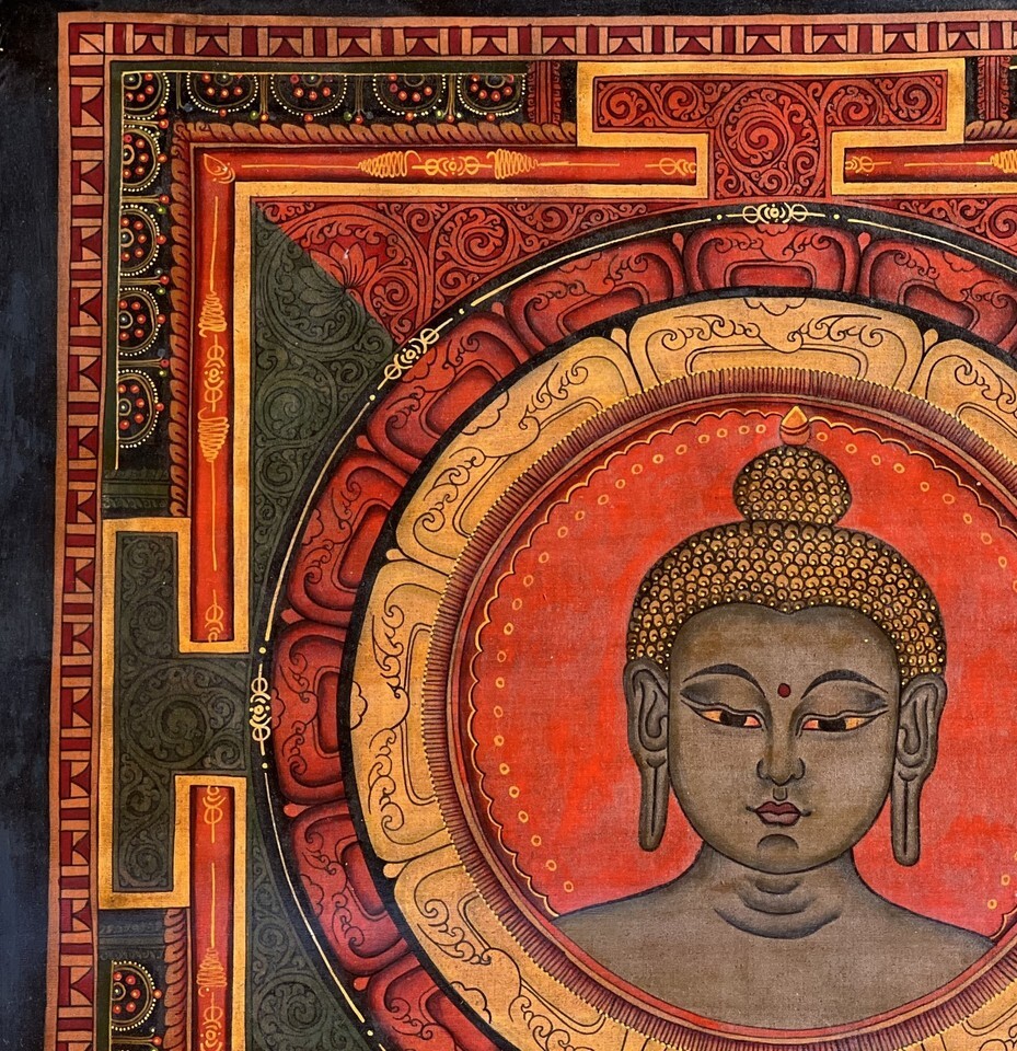 OIL VARNISHED SRI YANTRA MANDALA MEDICINE BUDDHA ORIGINAL THANGKA PAINTING