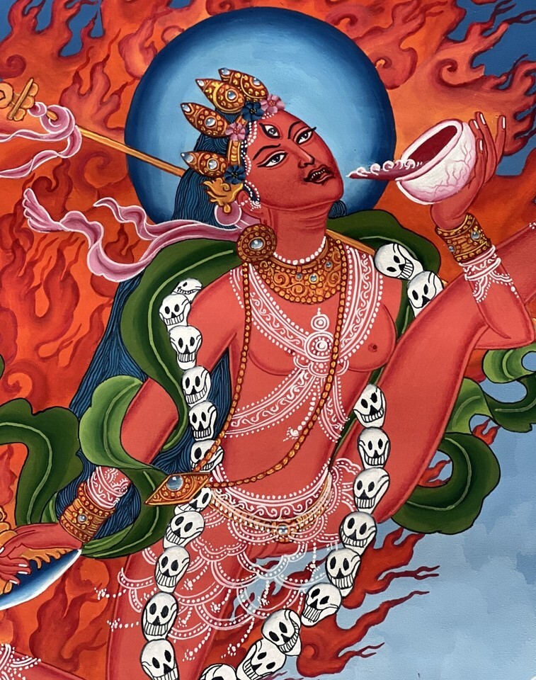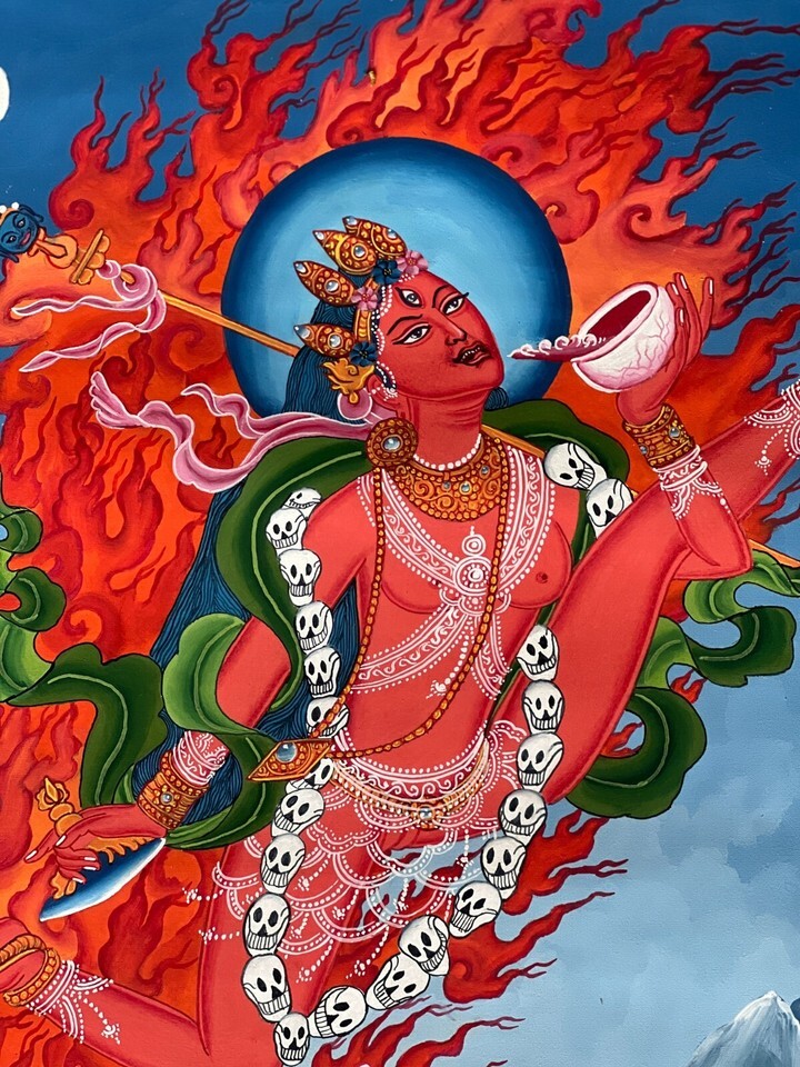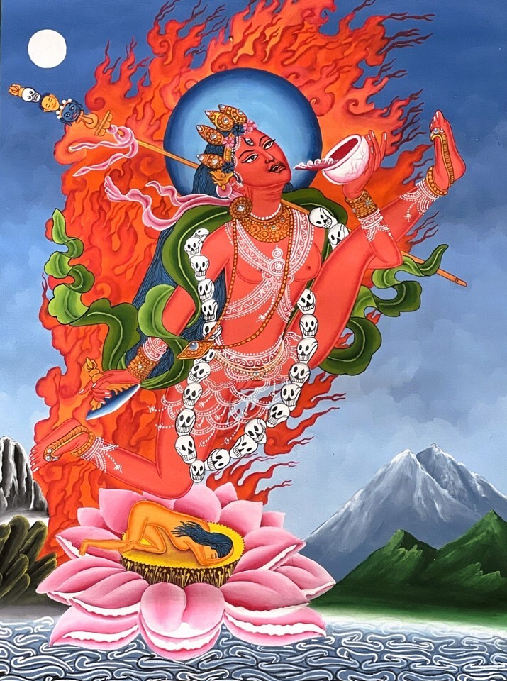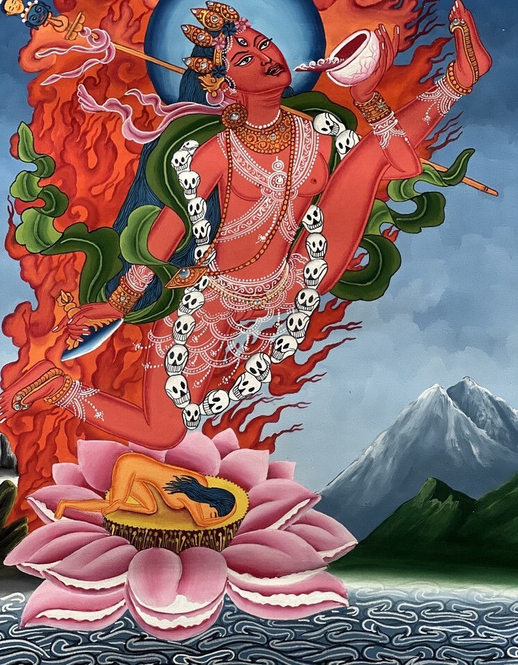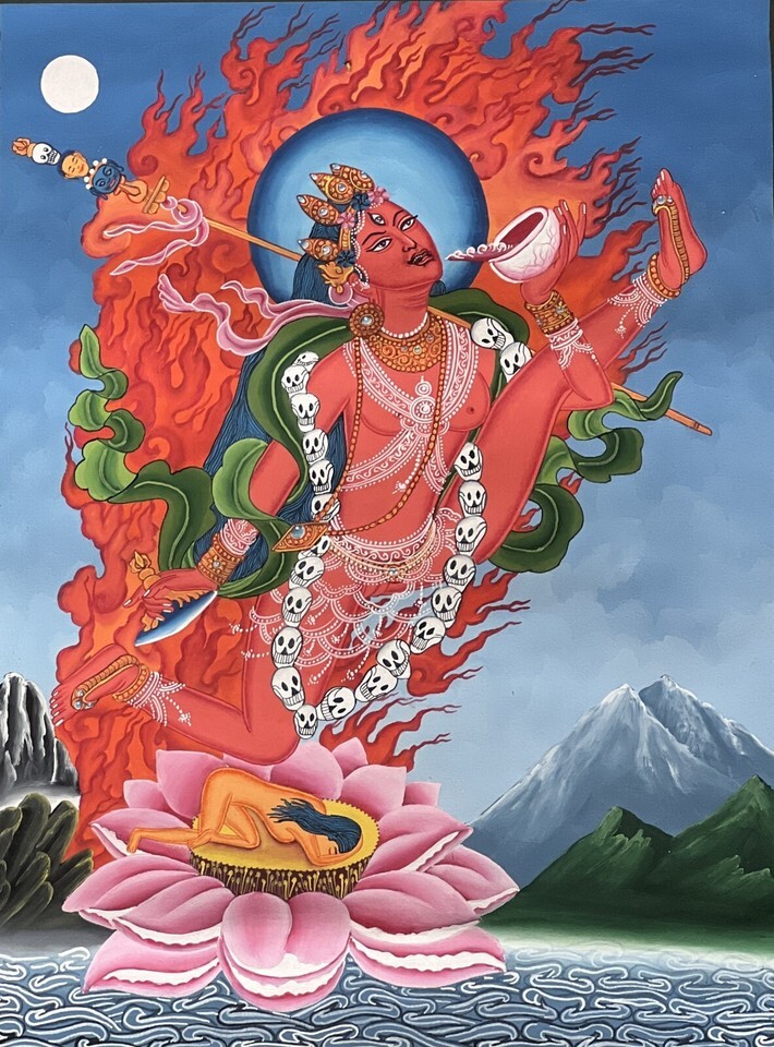 AKASH YOGINI/ FLYING DAKINI/JOGINI ORIGINAL NEWARI PAUBHA THANGKA PAINTING