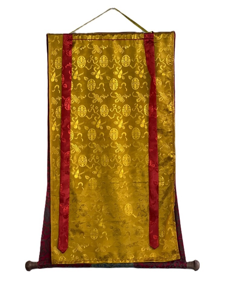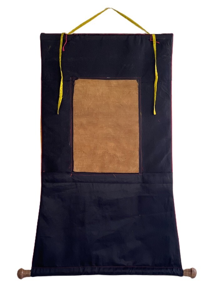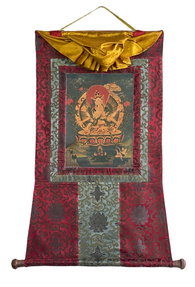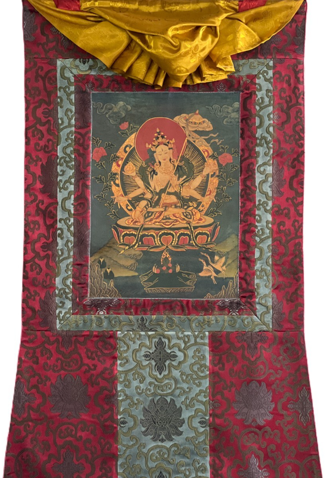 SITATAPATRA ORIGINAL OIL VARNISHED TIBETAN THANGKA PAINTING WITH SILK BROCADE