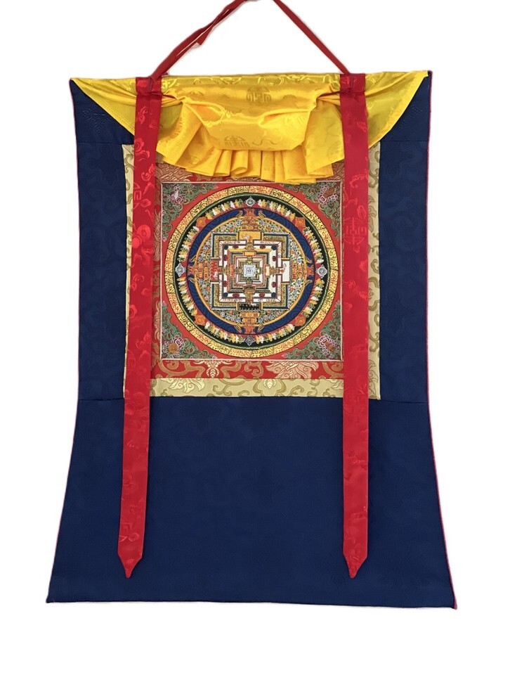 KALACHAKRA MANDALA ORIGINAL TIBETAN THANGKA/ THANKA PAINTING WITH SILK BROCADE
