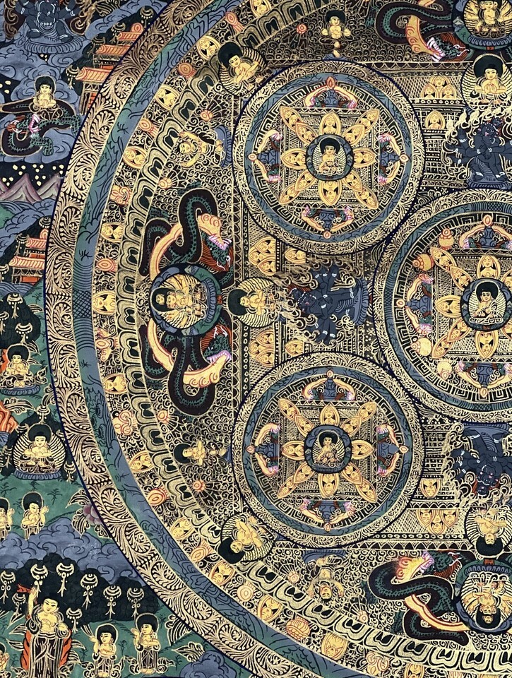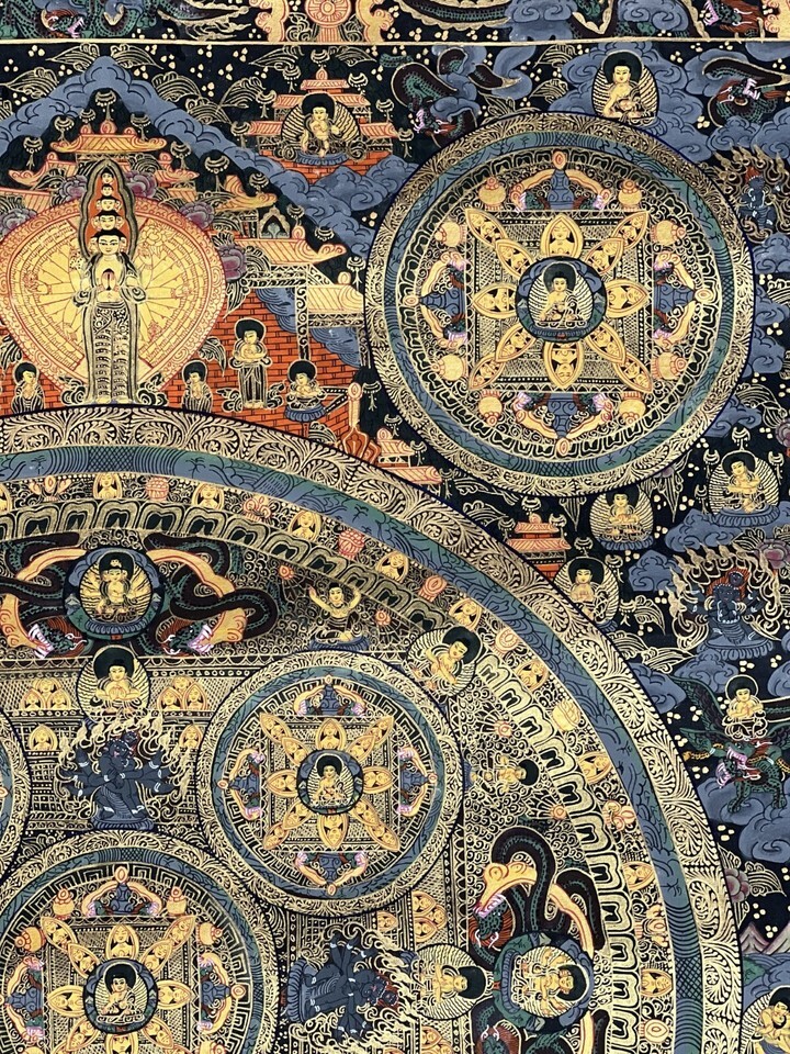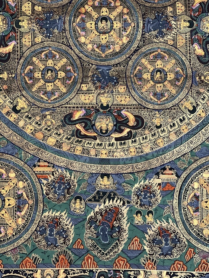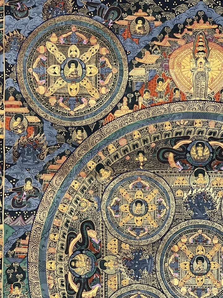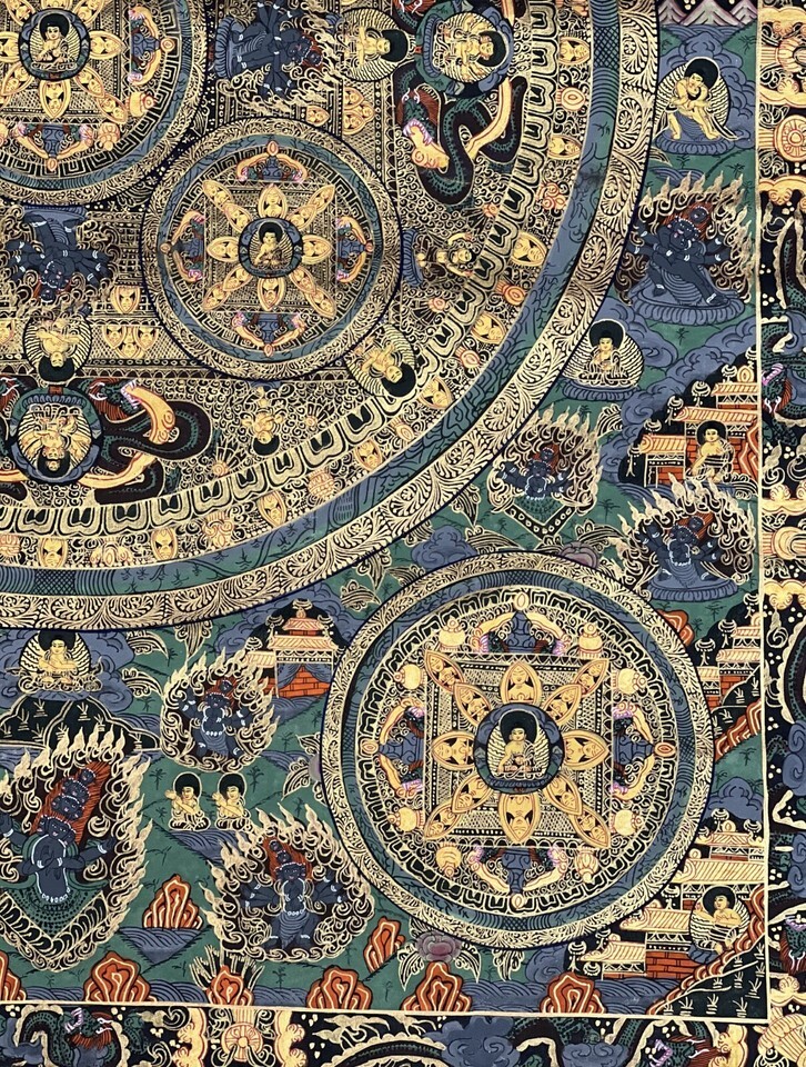 BUDDHA LIFE/WHEEL OF LIFE MANDALA ORIGINAL TIBETAN MEDITATION THANGKA PAINTING