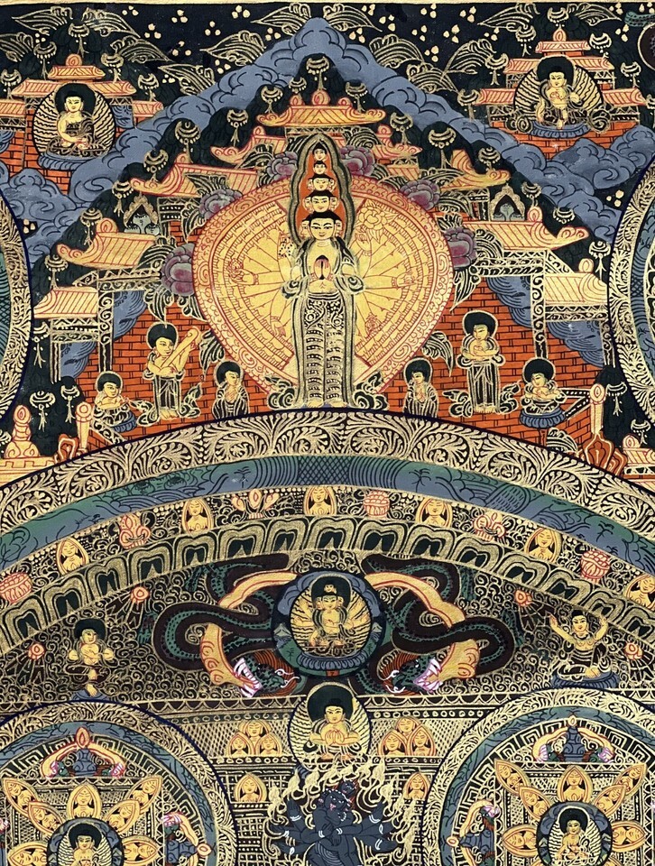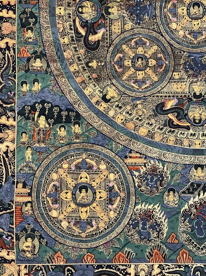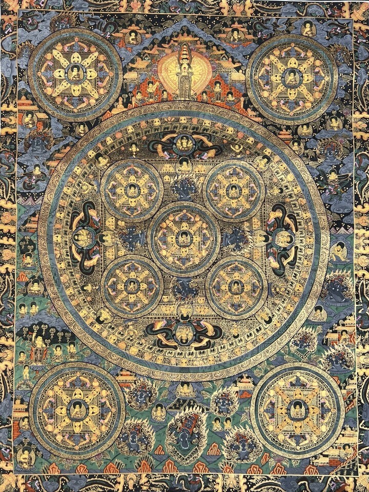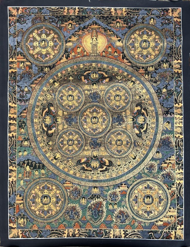 BUDDHA LIFE/WHEEL OF LIFE MANDALA ORIGINAL TIBETAN MEDITATION THANGKA PAINTING