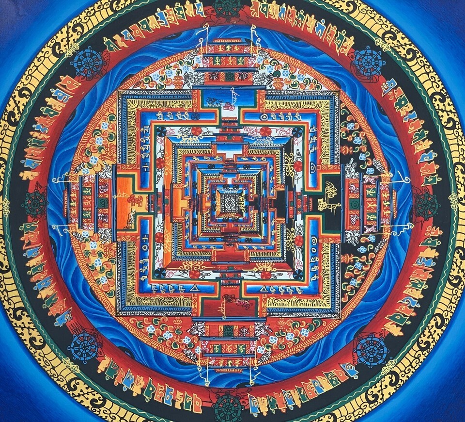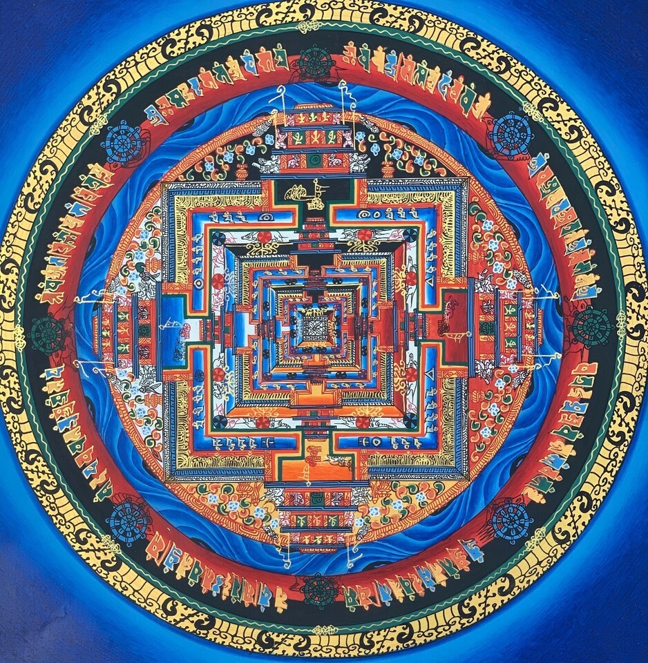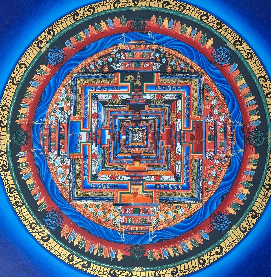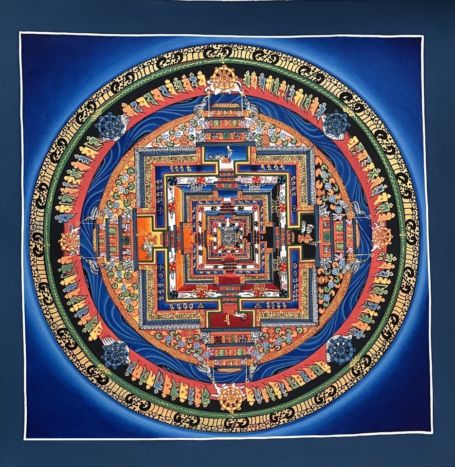 GENUINE HAND-PAINTED KALACHAKRA MANDALA -THE WHEEL OF LIFE ORIGINAL- TIBETAN THANGKA PAINTING
