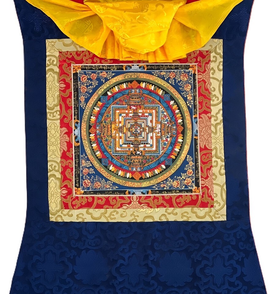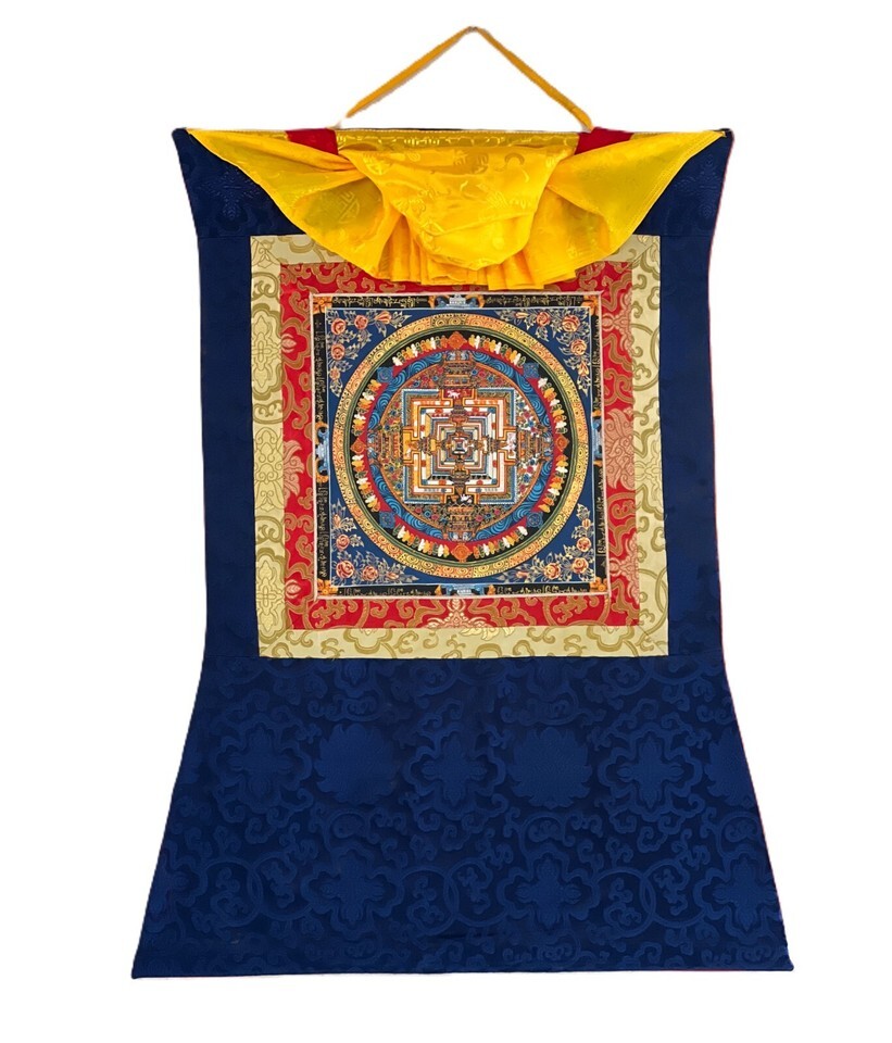 KALACHAKRA MANDALA ORIGIUNAL TIBETAN THANGKA/THANKA PAINTING WITH SILK BROCADE