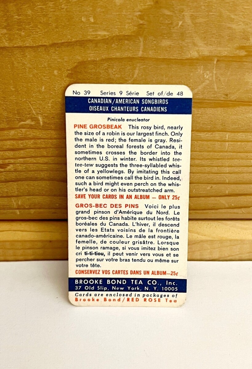 Vintage Songbird Trading Card Pine Grosbeak 1966 S9N39 Brooke Bond Tea Co