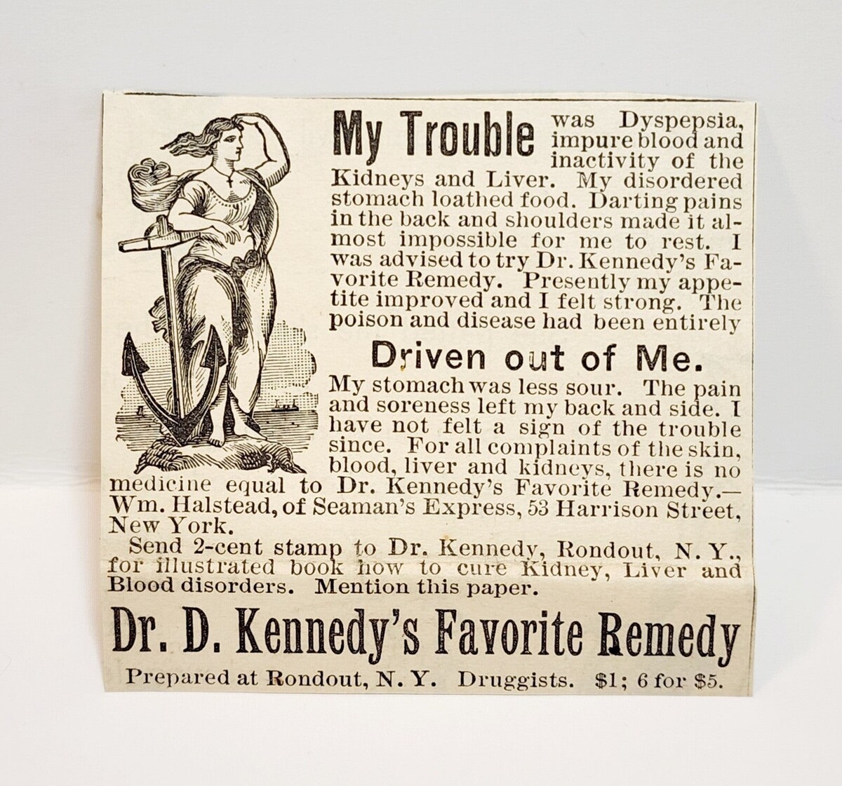 1887 Doctor Kennedy Remedy Victorian Quack Medicine NY Advertisement 2.25 x 2.25